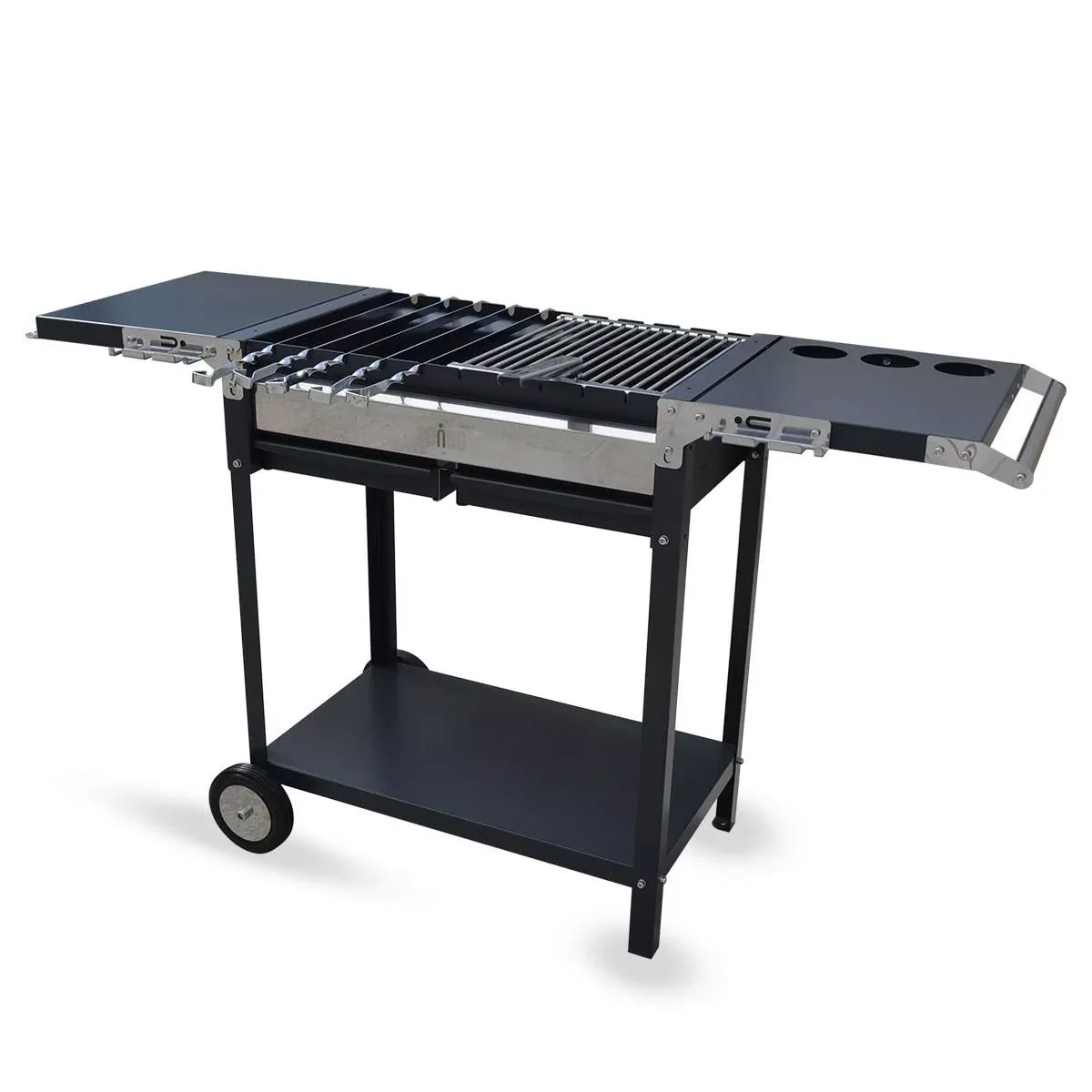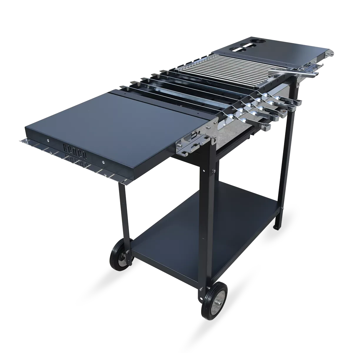 Мангал PREMIUM – представник преміальної серії та лідер продажу серед професійних мангалів. Конструкція – частково розбірна, тому пристрій зручно зберігати та транспортувати. Особливість конструкції – у двох розкладних столах з обох боків мангалу. На них можна різати та зберігати продукти, також вони обладнані додатковими вішалками. Жаровня виконана зі сталі з вогнетривким покриттям. Має два зольні ящики, бо цей мангал преміум класу розрахований на готування страв на шампурах та решітці-гриль одночасно. Універсальна модель мангалу PREMIUM вразить, навіть професійних шеф-кухарів.