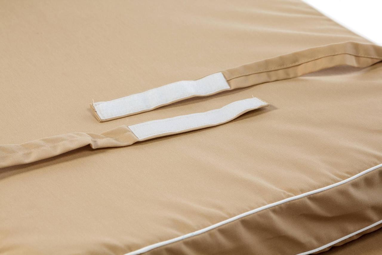 Для фіксації матраца до лежака на спинці передбачені липучки, а в середній та нижній частині - зав'язки.