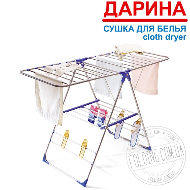 Сушилка напольная «Дарина» – крепкая, надежная сушка, выполнена из прочной окрашенной стали. Быстра и проста в сборке, а в сложенном состоянии весьма компактна и без труда поместится в кладовой или в небольшом проеме.