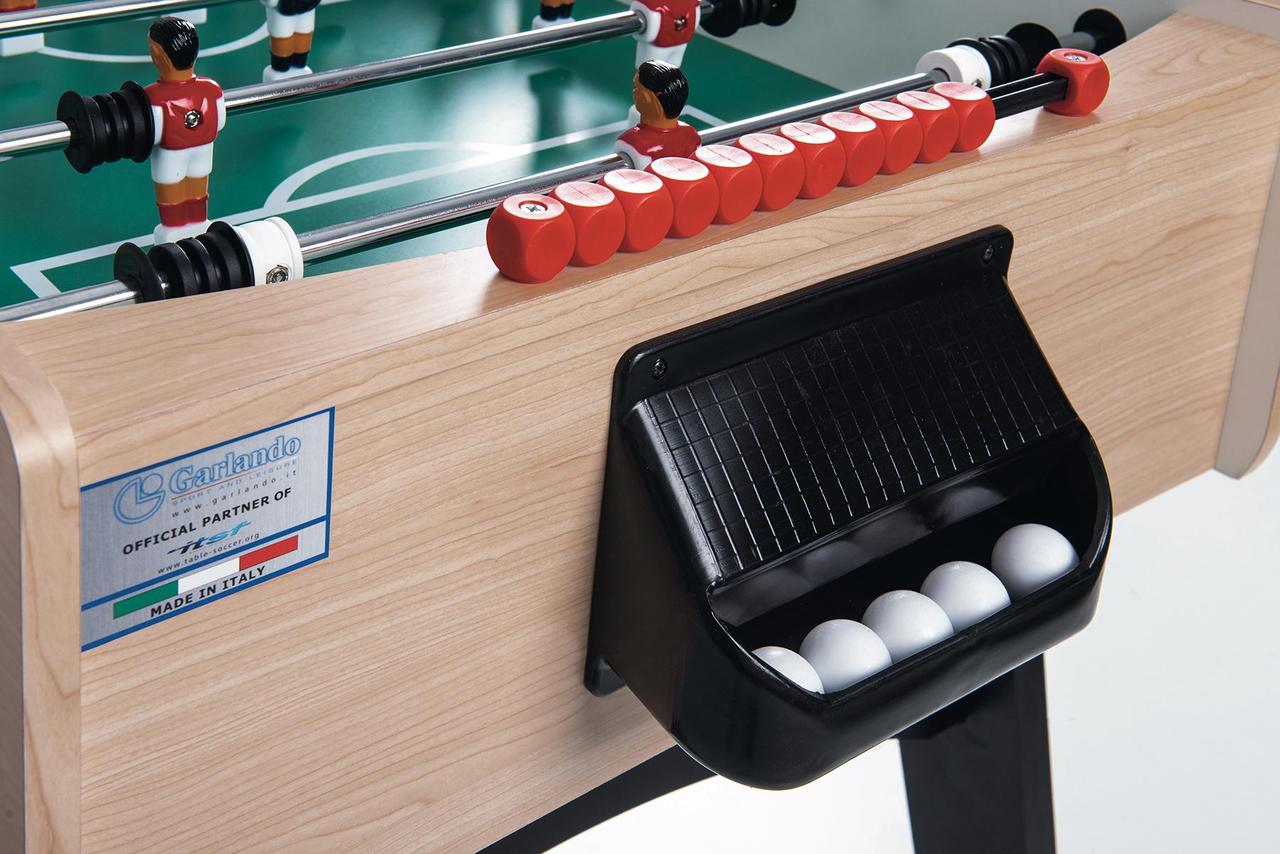 Настільний футбол Garlando F-10 Maplewood (F10ACULNO) підходить для всієї родини, але насамперед призначений для дорослих. Модель зроблена безпосередньо в Італії з високоякісних матеріалів, що забезпечують довговічність та задоволення від гри, з урахуванням конкретних вимог, яким має відповідати футбольний стіл. Поверхні столу покриті матеріалом, який можна мити, забезпечуючи його очищення в разі необхідності. Настільний футбол Garlando F-10 Maplewood (F10ACULNO) відповідає європейським стандартам безпеки EN 71-1, 71-2, 71-3 та 71-9.