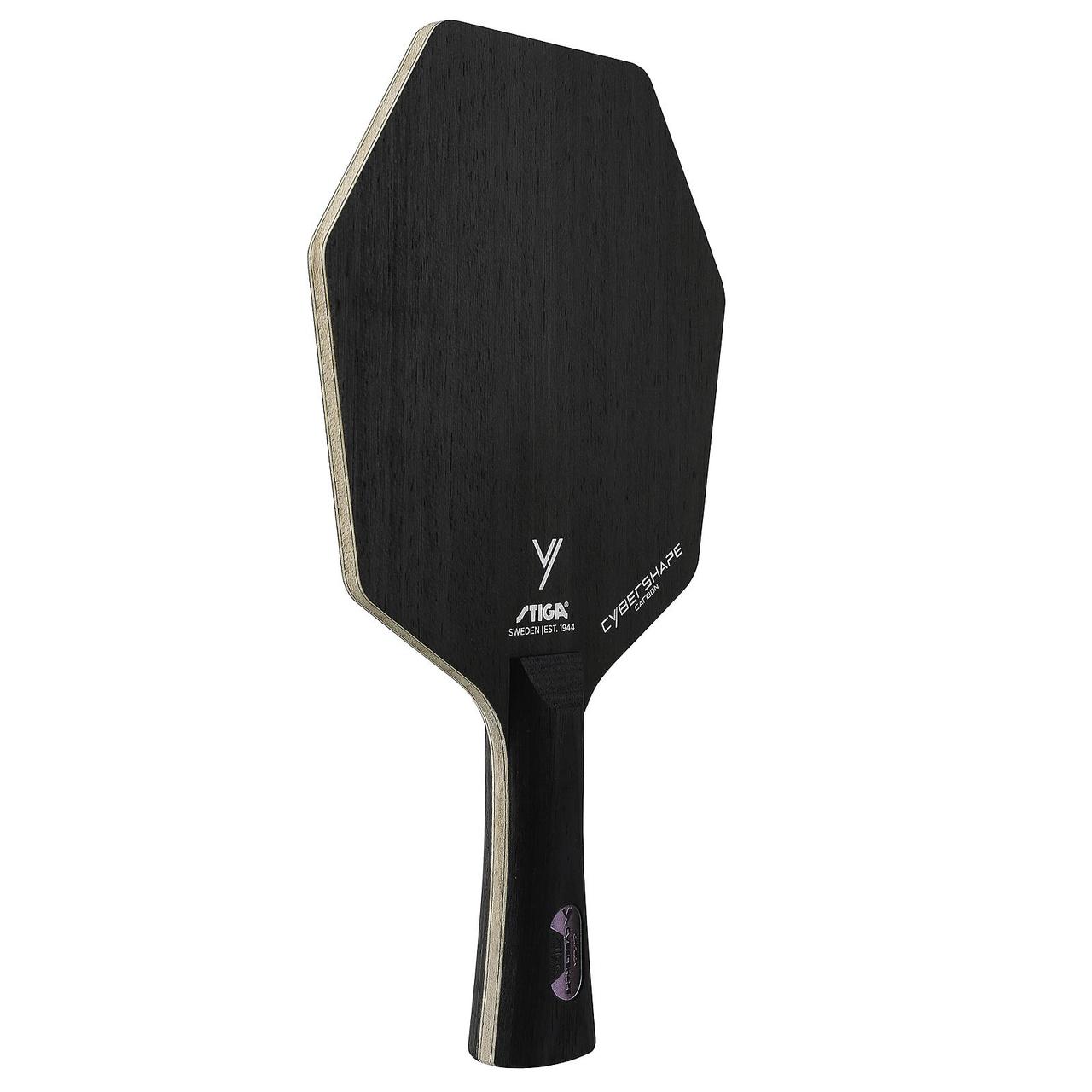 STIGA Cybershape Carbon — це швидкісна атакувальна основа для настільного тенісу орієнтована на сучасний темп гри і розроблене для досвідчених та професійних гравців, які бажають поєднання потужності, швидкості та контролю. Поєднання фірмової форми Cybershape з карбоновими шарами суттєво розширює оптимальну зону удару та робить політ м’яча більш передбачуваним навіть на максимальних швидкостях. Конструкція з 5 шарів натуральної деревини та 2 шарів карбону забезпечує жорсткий, вибуховий відгук без втрати контролю й зайвих вібрацій. Оптимізована геометрія леза зміщує sweet spot у верхню частину, що особливо ефективно при подачі, контратаках і швидкій грі біля столу. Cybershape Carbon створена для агресивного стилю OFF і найкраще розкривається у грі першого темпу, швидких топспінах та жорстких блоках.