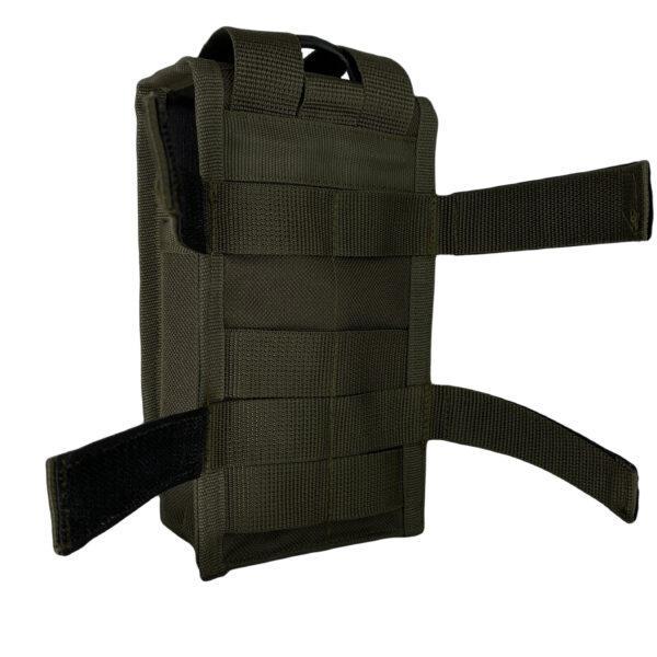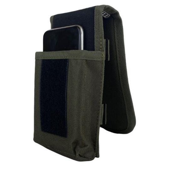 Підсумок для зберігання та перенесення на спорядженні двох смартфонів або телефону та Powerbank. MOLLE – поліамідна ремінна стрічка, 320 кг на розрив, вогнестійка, має водовідштовхувальні властивості. Липучка клас А – понад 5000 циклів відкриття, використання при -30°С … +90°С, стійкість деталей до поздовжньо-поперечних навантажень. Армовані нитки не бояться перепаду температур та не вбирають вологу. У місцях максимального навантаження використовується закріпка у 4 проходи або при необхідності закріпку зіг-заг, що забезпечує тривалий строк служби вузла та надійність при експлуатації. Зносостійка вологозахисна тканина кордура, спеціально призначена для використання у жорстких умовах. Має клапан-кришку, що закривається міцною липкою стрічкою велкро. Кришка-клапан та задня панель укріплені прокладкою IZOLON для додаткової жорсткості. Задня стінка кріпиться до спорядження строповою системою MOLLE та має додаткові фіксацію липкими стрічками. Металеве півкільце на задній панелі дозволяє закріпити підсумок на карабін або гачок. Характеристики: Розмір – 18,5х4,5х10,5 см; Тканина — Cordura 500D; Колір – оливковий; Вага – 150 г.