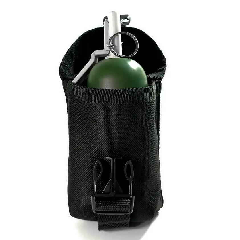 ПІдсумок забезпечує швидкий доступ до гранати за допомогою кришки-клапану на фастексі. Виготовлений з міцної водовідштовхувальної всесезонної тканини. За допомогою системи MOLLE можна закріпити на рюкзаку, розгрузці, бронежилеті тощо. Зручність відкриття підсумка забезпечує петля-подовжувач із зносостійкої нейлонової стропи. Універсальний закритий підсумок використовується для зберігання гранати та схожих за розміром предметів. Для надійної фіксації на спорядженні використовуються дві стрічки. Характеристики: Розмір – 11х6,5х3,5 см; Тканина — Оксфорд 600D; Колір – оливковий; Вага – 60 г.