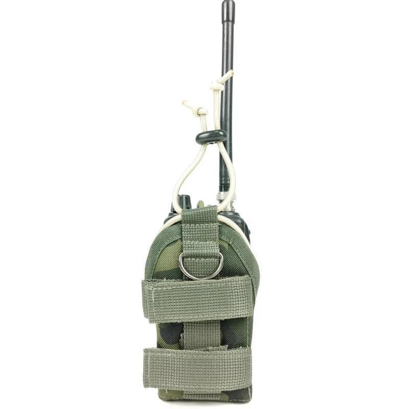 Призначення – для рації будь-якого типу. Кріпиться на нейлонову стрічку та фіксується липучкою. Для надійності в підсумок вшитий товстий еластичний джгут на затяжці-стоппері. Зберігається вільний доступ до усіх клавіш рації, тому нею можна користуватись прямо у підсумку. Зафіксувати підсумок можна на MOLLE, за металеве півкільце або на липучку зі зворотного боку. Вага – 70 г. Колір – мультикам. Розмір – 13,5х8,5х3,5 см.