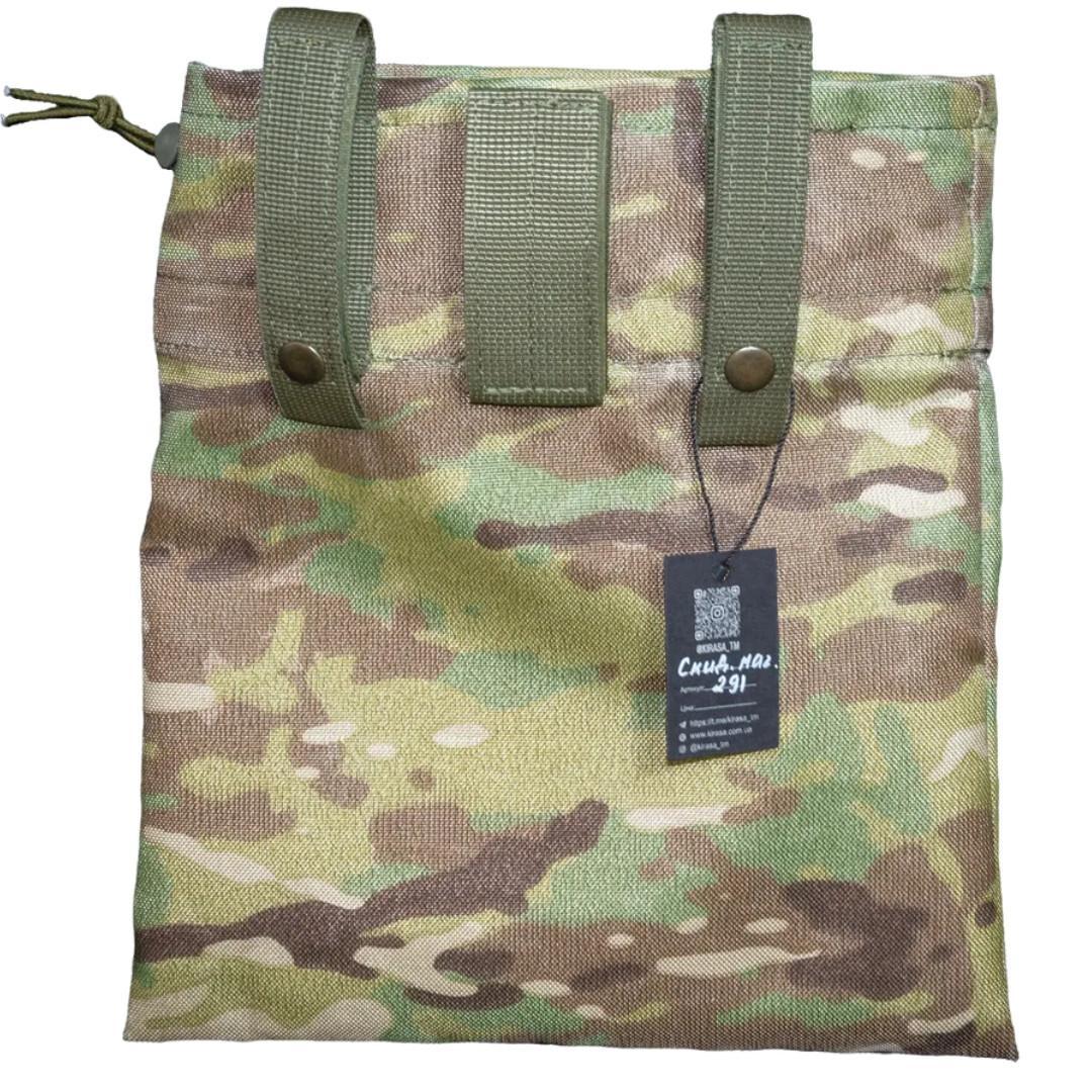 Що може бути важливішим за життя? На вогневій позиції це дуже відчутно. А що може зберегти життя воїну? Навички, вміння та час! Так, саме час. Кожна секунда має бути використана максимально раціонально. Саме для цього військовим необхідна ця сумка, вона призначена для скидання магазинів "наосліп" при екстреній перезарядці зброї. Максимальна концентрація на противнику, без роздумів про те, куди подіти використані ріжки, адже вони стануть у нагоді в бою. Для фіксації підсумку використовується система кріплення MOLLE за стандартами НАТО. Легкий міцний й надійний, виготовлена з тканини, що не пропускає воду, не боїться пилу та бруду, не деформується. Сумка не лише для скидання використаних магазинів, а й для зберігання будь-яких невеликих речей (телефона, навушників тощо). Кріпиться до поясу, бронежилета та рюкзака за допомогою стрічки-липучки або на стропах з пряжками, виготовлений із щільного матеріалу Cordura 1000. Присутня альтернативна система кріпленя на пояс за допомогою кнопок. Легкий, але міцний водонепроникний клапан на гумці з фіксатором. Має робоче положення, і положення скручування По внутрішньому периметру горловини має стягувальну резинку-стопер, завдяки чому магазини та інше спорядження не випадають. Має два люверси на дні для стоку води. Характеристика: Розмір: 27х29 см; Тканина: Cordura 1000; Колір: мультикам; Вага: 200 г.