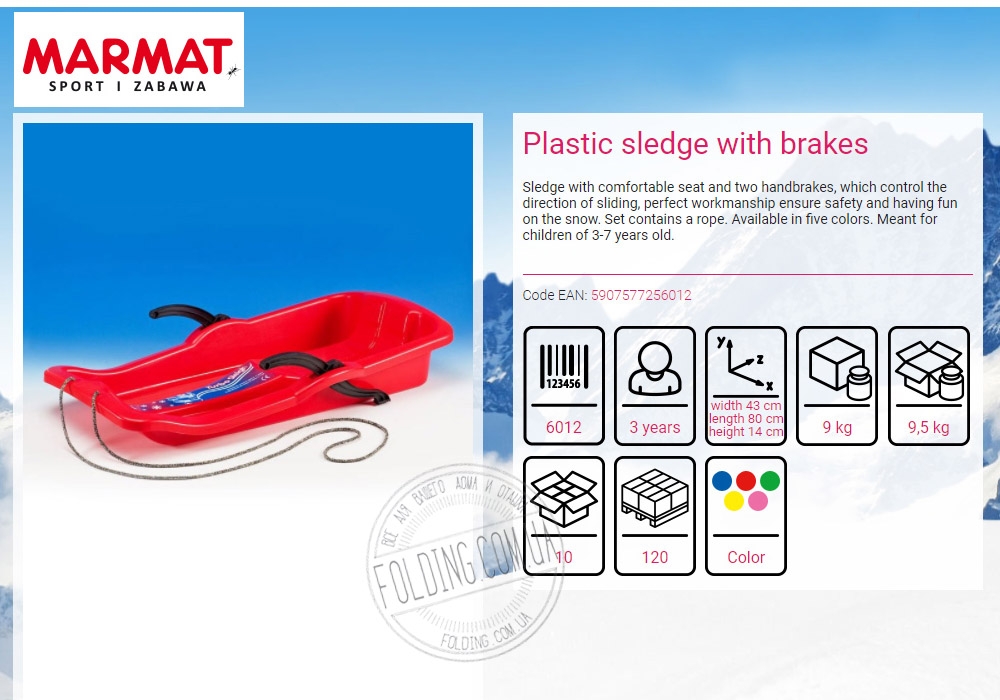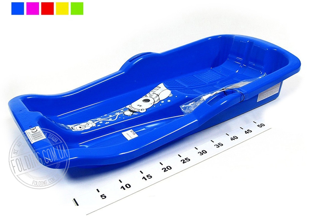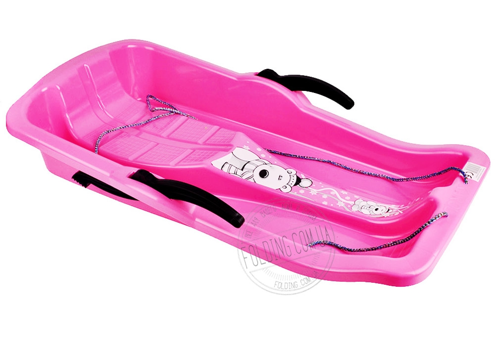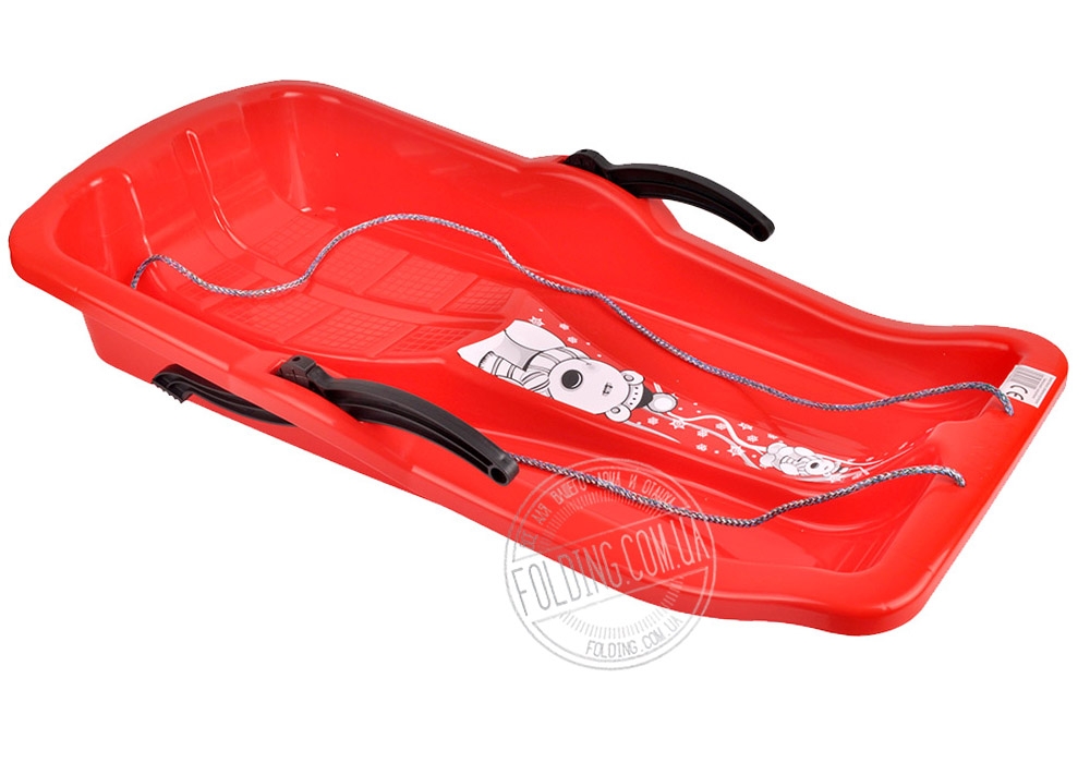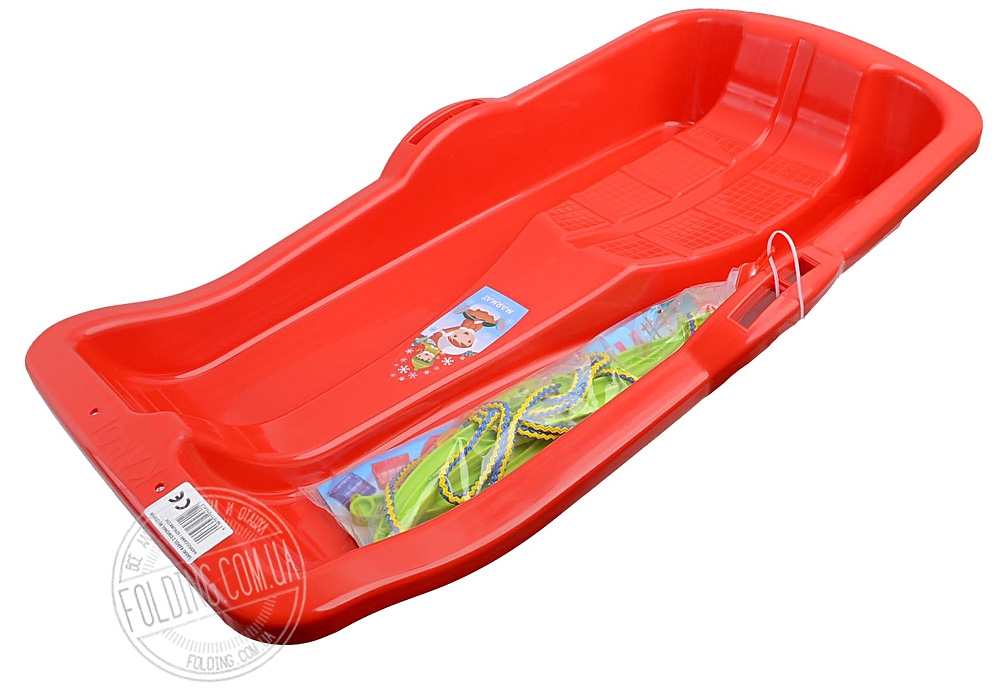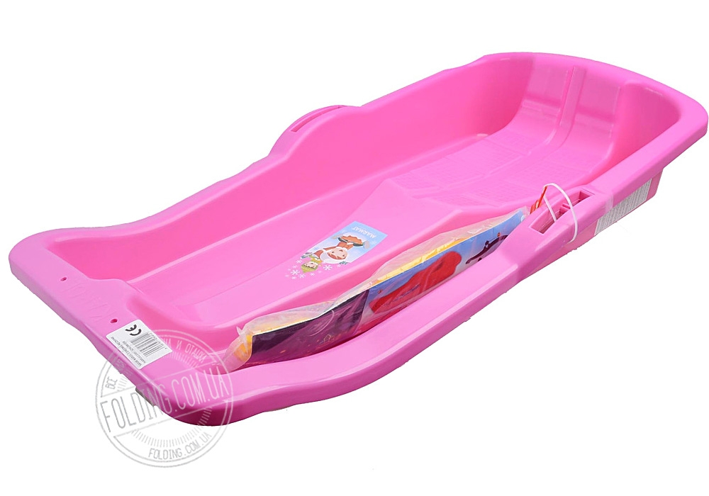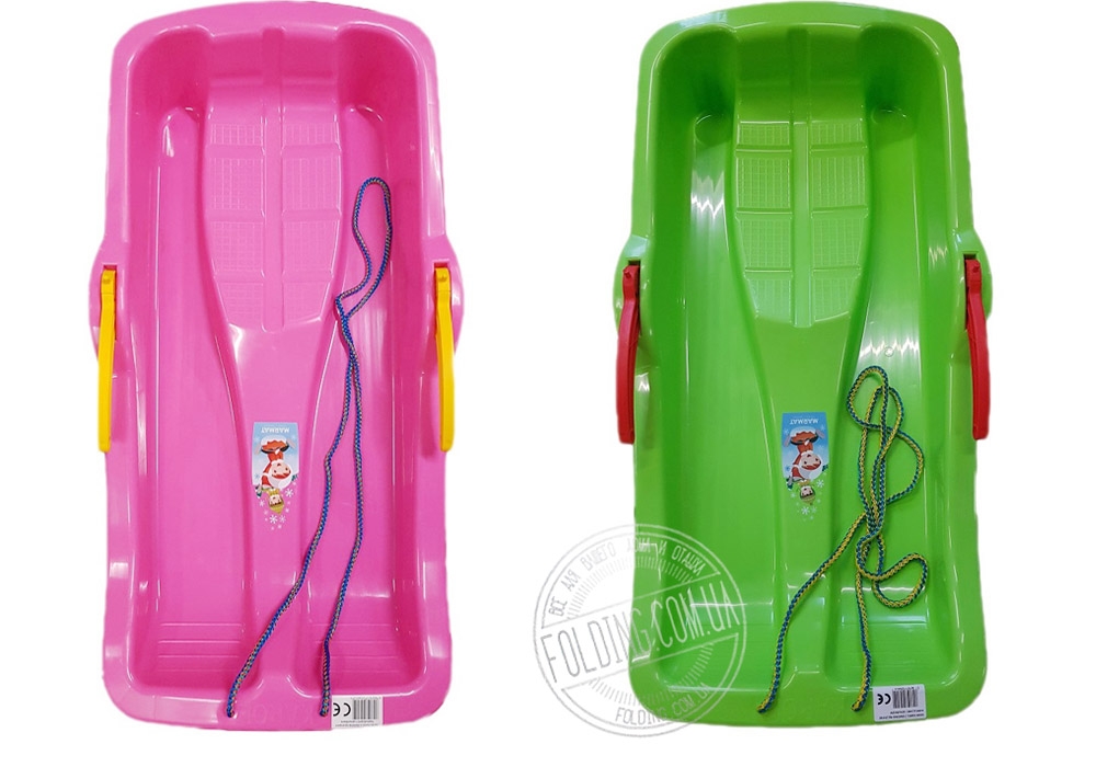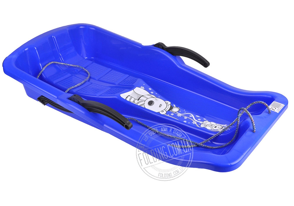Санки-корыто пластмассовые с двумя ручками, которые находятся по бокам санок и выполняют роль тормоза. Благодаря гладкой поверхности и наличию эргономического контурного сидения, хорошо набирают скорость при скатывании с горки.
