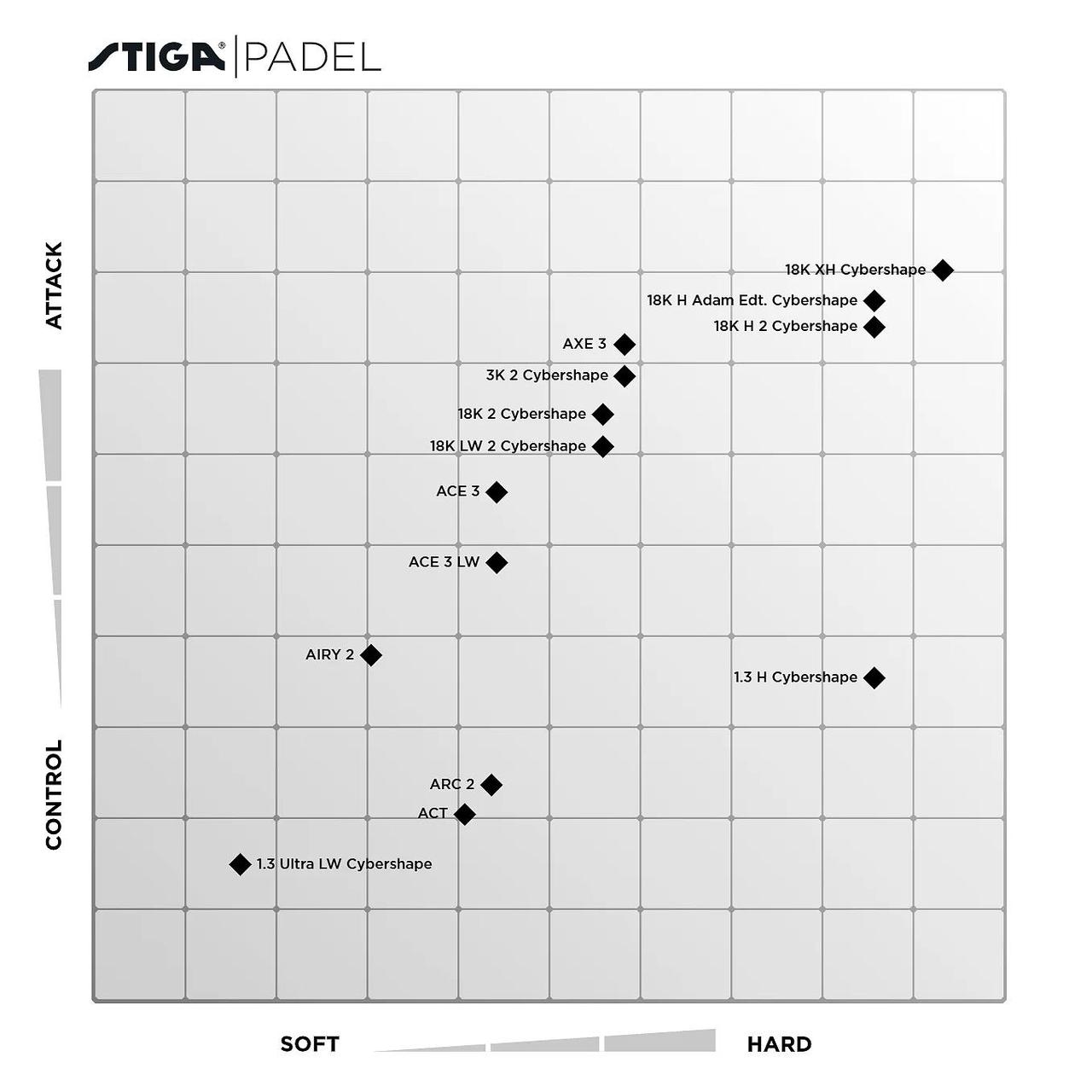 Ракетка для падел тенісу Stiga Racket 1.3K Hard Cybershape – це універсальна модель, виготовлена з компонентів нашої популярної ракетки ARC 2. Ця ракетка поєднує в собі чудову швидкість та контроль, не будучи занадто вимогливою, але водночас вона може забезпечити потужність, коли вам це потрібно. Середньо-високий баланс означає, що ви можете грати довше, не відчуваючи втоми в руці. Вона ідеально підходить як для початківців, так і для більш досвідчених гравців, і особливо підходить для тих, хто хоче спробувати дизайн Cybershape.