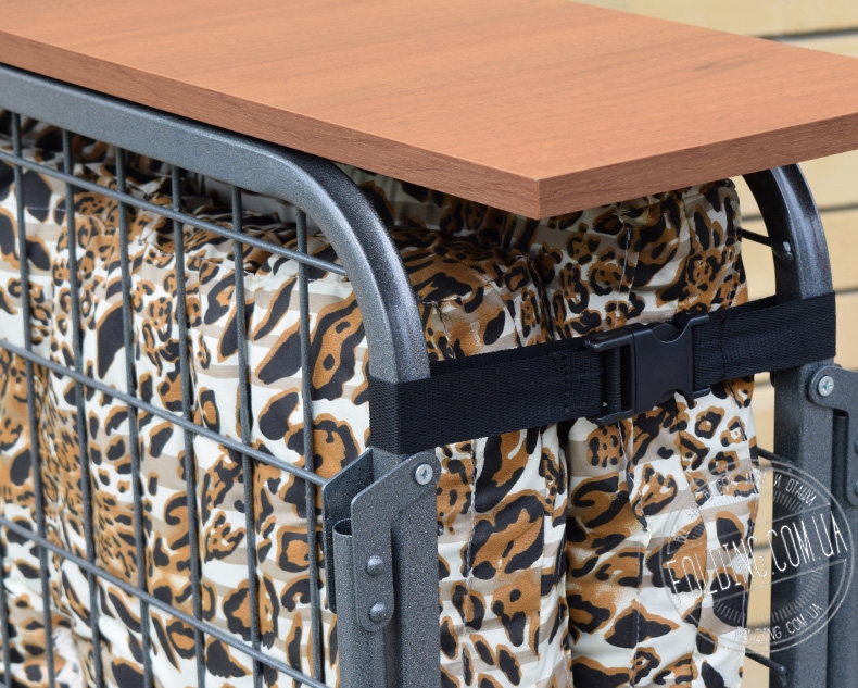Когда кровать сложена, ее удерживают прочные крепежные ремни. Вы с легкостью сможете перемещать ее в таком состоянии по ровной поверхности благодаря четырем колесикам.