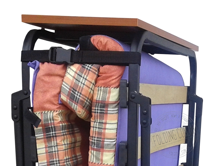 Кровать комплектуется дополнительным быльцем, которое выполняет ряд полезных функций. Во-первых, в разложенном состоянии быльце служит ограничителем, который надежно зафиксирует подушку и не даст ей упасть. Во-вторых, в сложенном состоянии кровати, благодаря быльцу, она может служить небольшой тумбой.