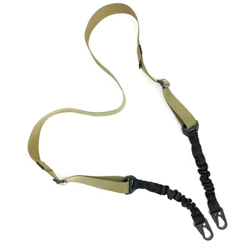 Тактичний двоточковий ремінь виготовлений з ремінної стрічки 4 см для більшого комфорту при перенесенні зброї та безпеки при використанні. Має дві точки фіксації та підходить під різноманітні види зброї. Довжина регулюється двома пряжками. До зброї кріпиться двома металевими карабінами. Еластичні вставки перед карабінами зменшують навантаження на плече й знижують трясіння при ходьбі та швидкому переміщені. • Вага – 135 г. • Колір – койот
