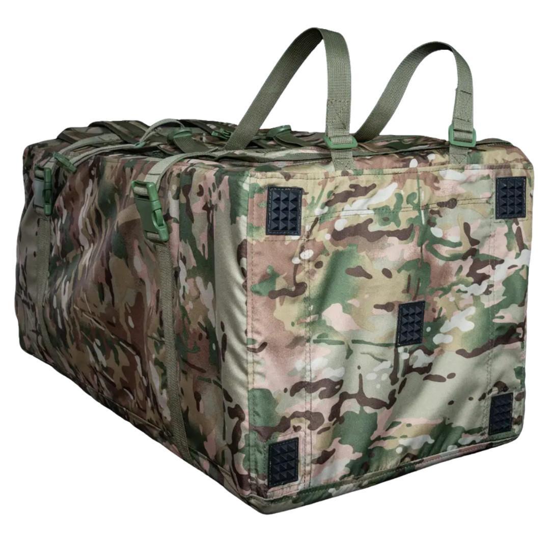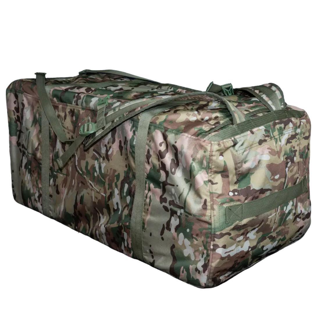 Військовий рюкзак призначений для зберігання та перенесення екіпіровки, особистих речей, виконання військових завдань, риболовлі, туризму, полювання, спорту тощо. Данна модель розрахована на кількість провізії та речей на період до 30 днів на одну особу. У цій моделі окрім головного відділеня є два внутрішніх відділення на блискавках, для комфортного розміщення необхідних речей. Дуже зручний тактичний рюкзак об'ємом 130 літрів, який стане в нагоді як в армійських цілях, так і для міських умов. Також їх часто використовують у походах та для риболовлі. Широкі лямки рівномірно розпреділяють навнатаження на плечі та спину. Нагрудний ремінь, що з'єднує дві лямки і проходить упоперек грудей, суттєво знижує навантаження на спину та плечі. Також він допомагає зафіксувати рюкзак і запобігає його зісковзування з плеч під час руху. Ручки для носіння розташовані горизонтально та вертикально. Габаритні розміри: ширина 80 см, глибина 41 см, висота 95 см. Характеристики:Тканина: Кордура 1000D; Розмір: 80х41х95 см (ШхДхВ); Об'єм: 130 літрів; Колір: мультикам.