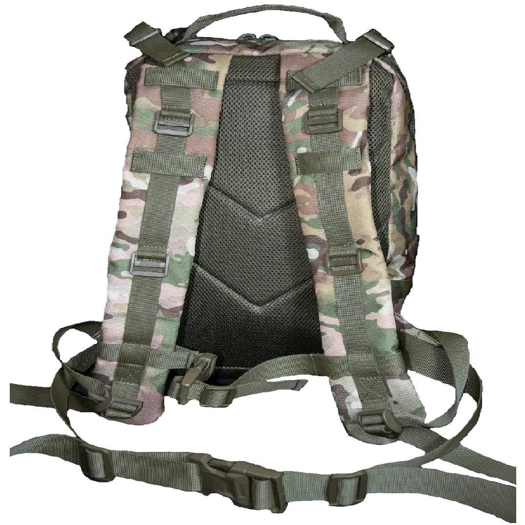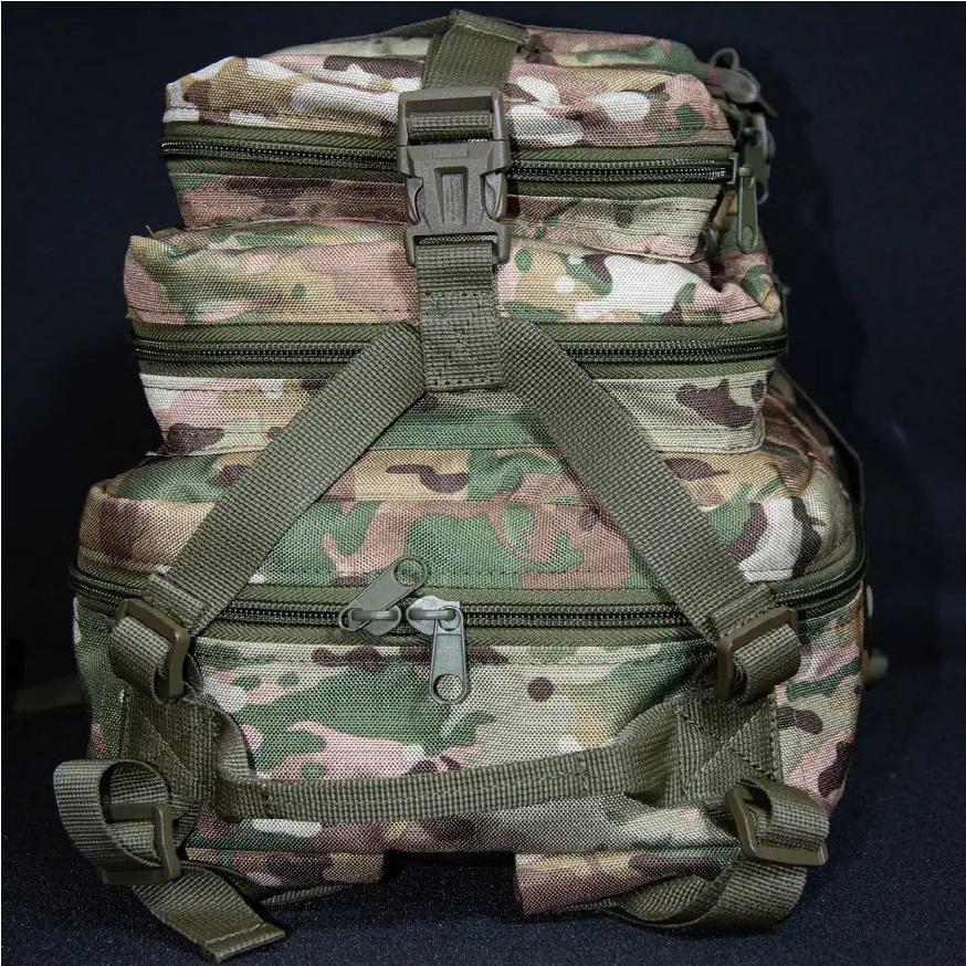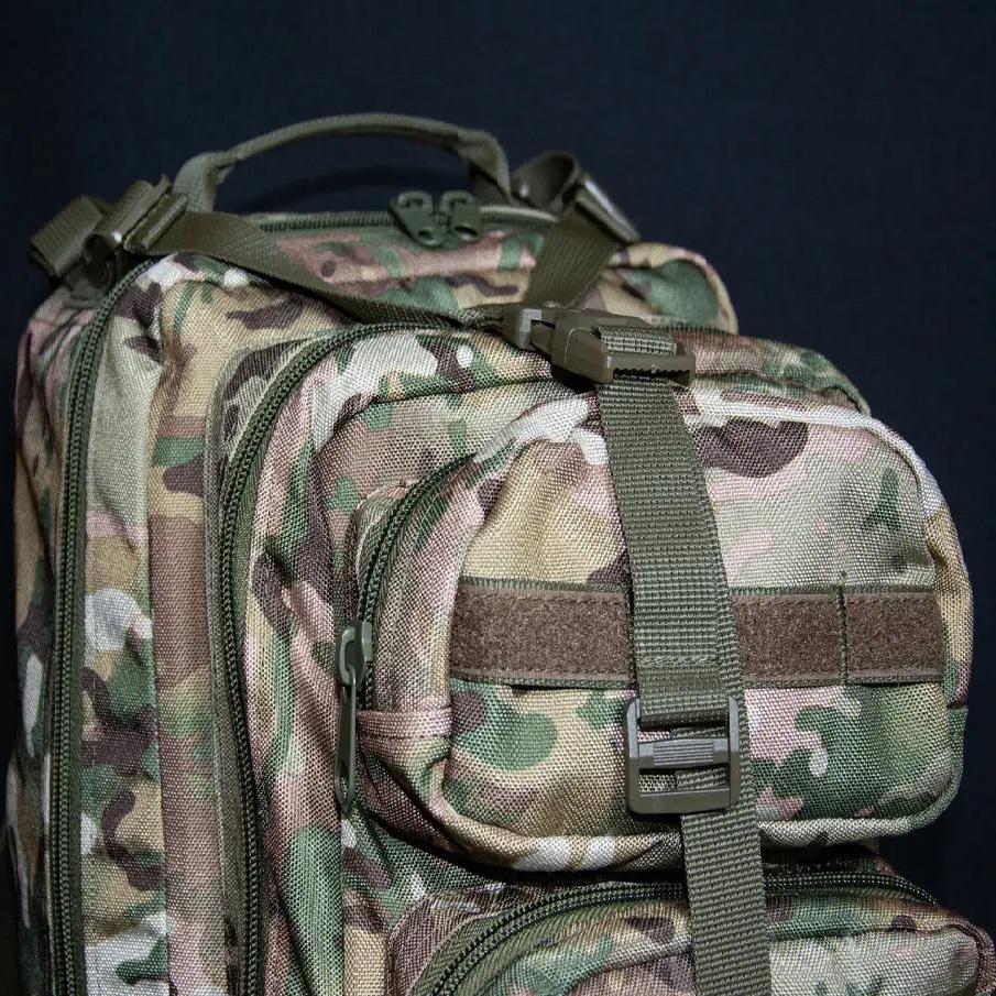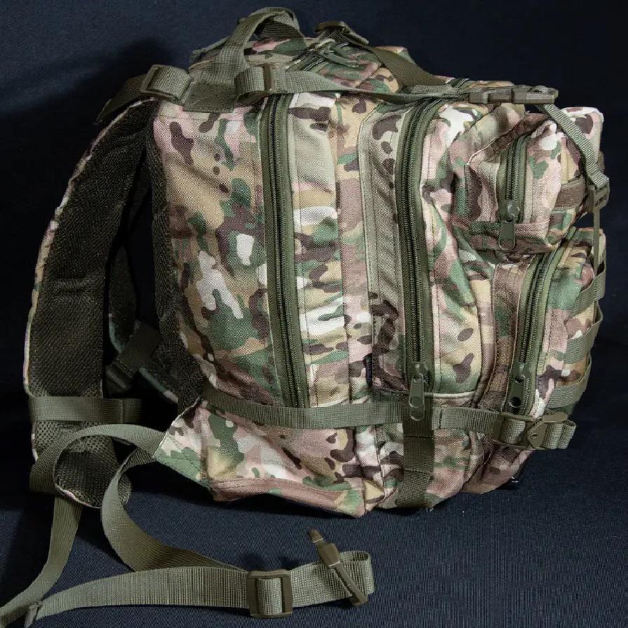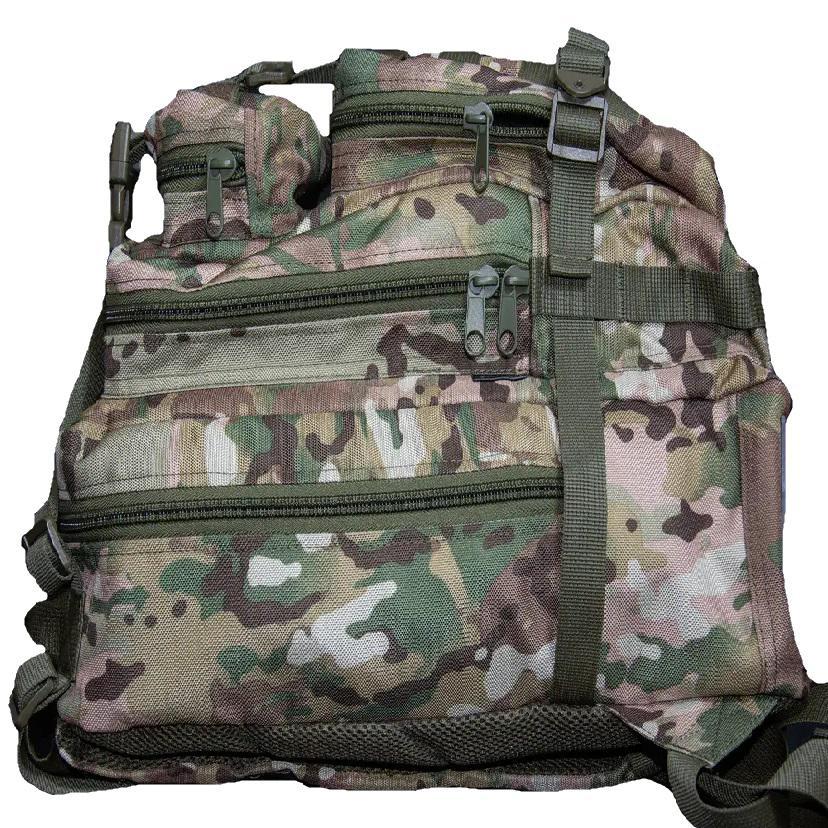 Військовий рюкзак призначений для зберігання та перенесення екіпіровки, особистих речей, виконання військових завдань, риболовлі, туризму, полювання, спорту тощо. Дуже зручний тактичний рюкзак об'ємом 35 літрів, який стане в нагоді як в армійських цілях, так і для міських умов. Також їх часто використовують у походах та для риболовлі. У ньому дуже грамотно розташовані всі відділи та кишені, доступ до них дуже простий. Для фіксаії підсумків використовується система кріплень MOLLE за стандартами НАТО. На передній частині також присутні кріплення, які дозволять закріпити необхідні аксесуари (карабін, ліхтарик та інше). Широкі лямки рівномірно розпреділяють навнатаження на плечі та спину. Вертикальна м'яка спинка виконує амортизуючу функцію та забезпечує циркуляцію повітря між рюкзаком та вашою спиною. Сітка мувер 3d і ПЕТ вставка для жорсткості по всій спині. Завдяки якісним матеріалам він прослужить вам довгий час. Рюкзак має 2 основних відділення. Система молі для підсумку. 2 зовнішні місткі кишені розміром: 23х18х5 та 8х18х5 см. 2 відділення: 23х45х13 та 23х39х13 см. 2 компресійних ременя з фіксатором через весь рюкзак Характеристики: Розмір: 45х18х23 см Тканина: Кордура 1000D; Об'єм: 35 літрів; Колір: мультикам.
