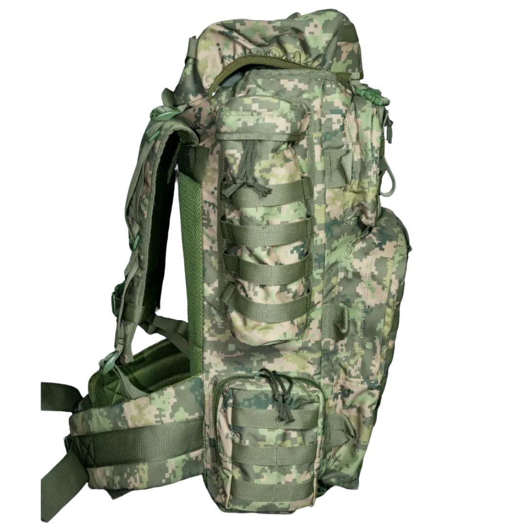70 літрів, який стане в нагоді як в армійських цілях, так і для міських умов. Також їх часто використовують у походах та для риболовлі. У ньому дуже грамотно розташовані всі відділи та кишені, доступ до них дуже простий. Для фіксаії підсумків використовується система кріплень MOLLE за стандартами НАТО. На передній частині також присутні кріплення, які дозволять закріпити необхідні аксесуари (карабін, ліхтарик та інше). Широкі лямки рівномірно розпреділяють навнатаження на плечі та спину. Нагрудний ремінь, що з'єднує дві лямки і проходить упоперек грудей, суттєво знижує навантаження на спину та плечі. Також він допомагає зафіксувати рюкзак і запобігає його зісковзування з плеч під час руху. Ремінь на стегнах - комплектуються тактичні рюкзаки великого об'єму. За своїм функціоналом він схожий із нагрудним ременем. Вентильована м'яка спинка виконує амортизуючу функцію та забезпечує циркуляцію повітря між рюкзаком та вашою спиною. Сітка мувер 3d і ПЕТ вставка для жорсткості по всій спині. Завдяки якісним матеріалам він прослужить вам довгий час. Рюкзак має 2 внутрішніх відділення: одне на блискавці інше загальне. Передбачено