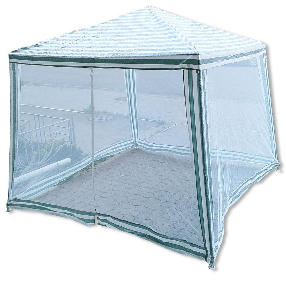 Щоб була можливість перебувати на свіжому повітрі, але при цьому не відмахуватися постійно від комарів і мошок, просто поставте садовий павільйон Ranger SP-002. Це полегшений варіант альтанки, де фактично є тільки дах над головою і антимоскітний захист навколо. Сітка захищає не тільки від комах, а й від прямих сонячних променів. Розташуватися під навісом садового павільйону на дачній ділянці - справа приємна. Монтаж павільйону не займає багато часу і сил. Ніжки фіксуються в землі, а додатково для стійкості розтягуються мотузками. Цілком достатньо місця, щоб встановити всередині садові меблі. Комфорт і затишок на садовій ділянці в тіні під навісом забезпечений, якщо ви вирішили купити павільйон садовий. Характеристика: - матеріал: поліетилен; - колір: зелений, білий; - каркас: металева труба Ø 25 мм, Ø 19 мм; - розмір в розкладеному вигляді: верх 2,4х2,4 м, низ 3х3 м, висота - 2,5 м; - вага: 7 кг.