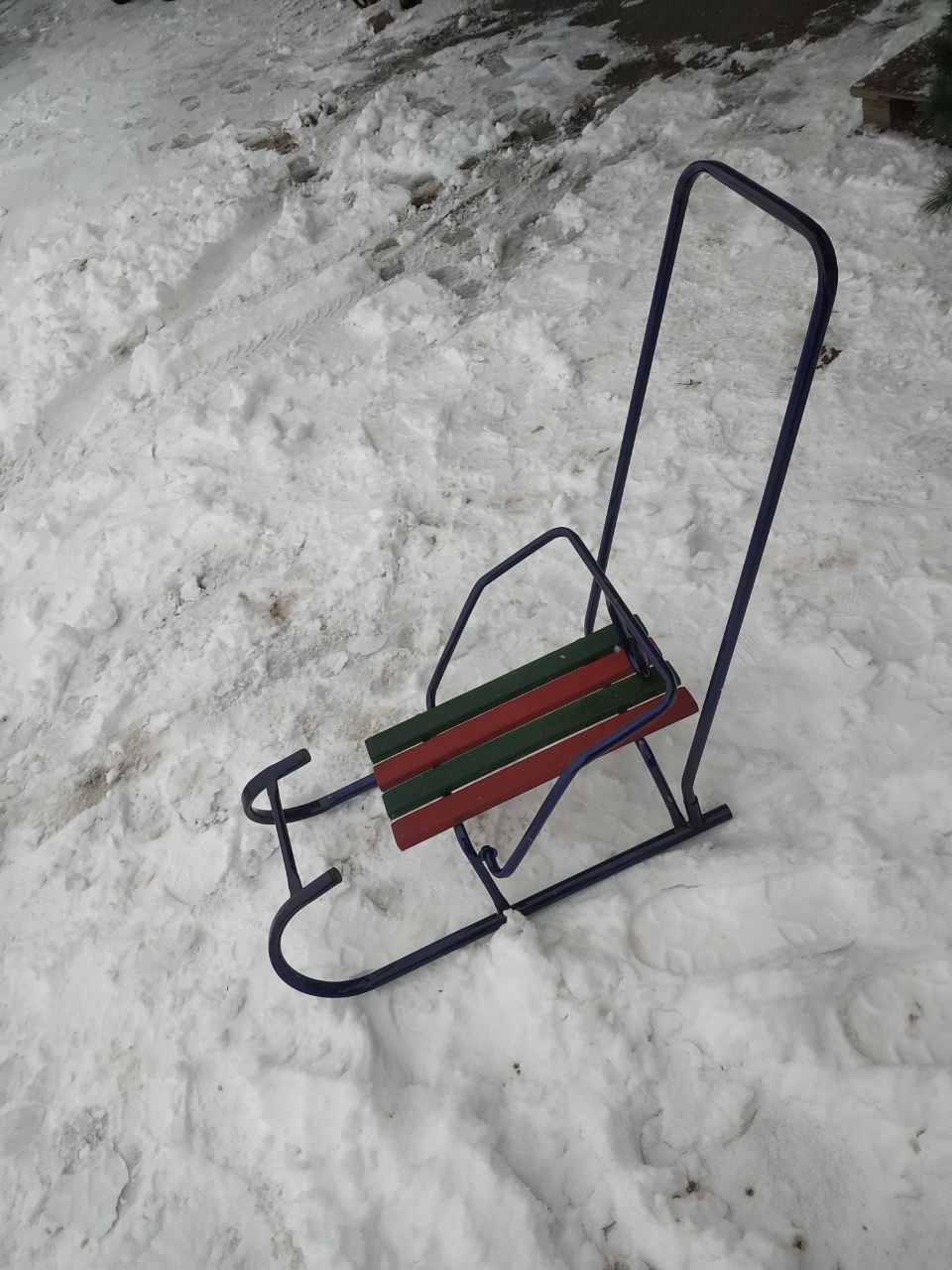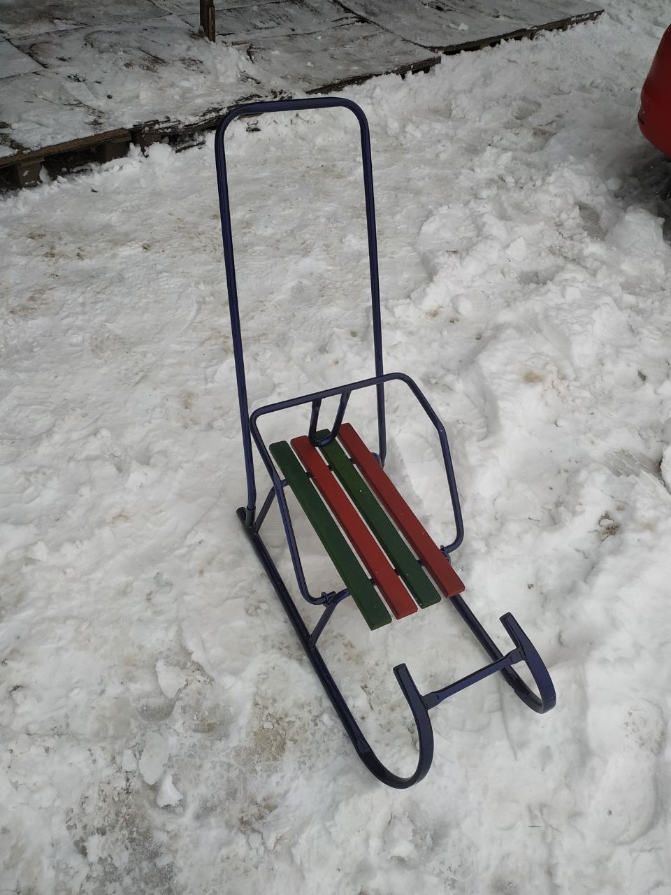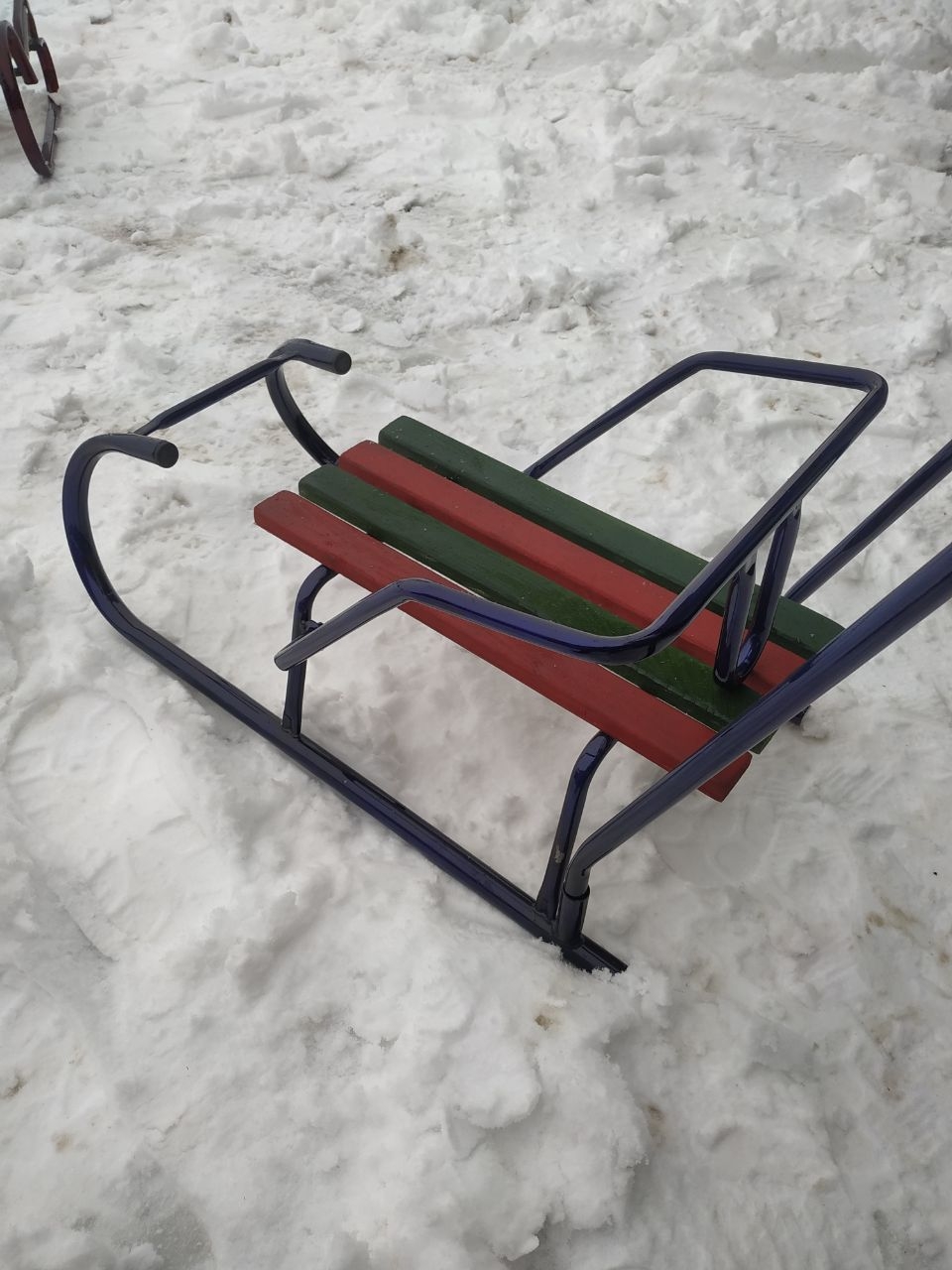 Каркас санок стальной, он окрашен качественной полимерной краской. Сидение санок это планки из натурального дерева.