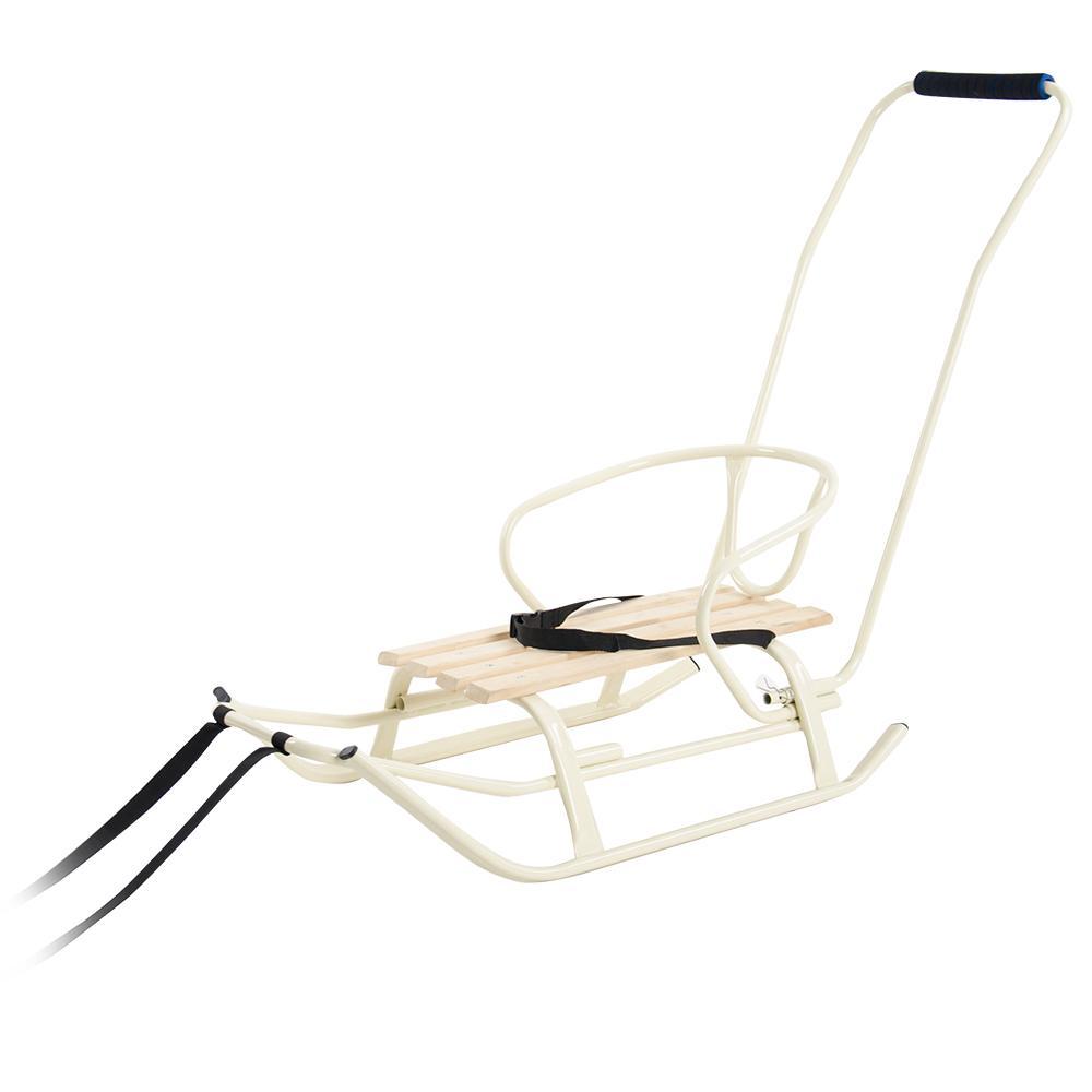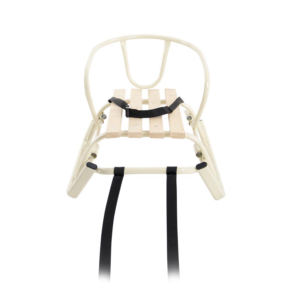 Дитячі санчата "Комета" підійдуть для дітей вагою до 80 кг. Колір санок – айворі, каркас металевий, сидіння виконане з міцних порід дерева. У комплекті із санками: – тяговий ремінь, який надійно закріплений на рамі; - Міцний ремінь безпеки, для додаткової фіксації дитини; - Знімна спинка Додатково ви можете придбати аксесуари для санок у нашому інтернет магазині : – ручка-штовхач (фіксується у зручному положенні) – Утеплений конверт із флісу/хутра – Муфта / Рукавички для рук Ручка та спинка знімні, тому санки підійдуть для катання на гірках. Дитячі санки від компанії Vitan – це чудове поєднання стильного дизайну, надійної якості, комфорту та безпеки.