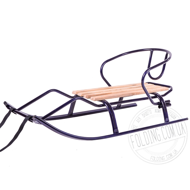 Полимерно-лаковое покрытие надежно предохранит стальные трубы каркаса от коррозии. Сидение санок состоит из ясеневых или ольховых реек. Санки комплектуются крепким тяговым ремнем длиной 2 метра.