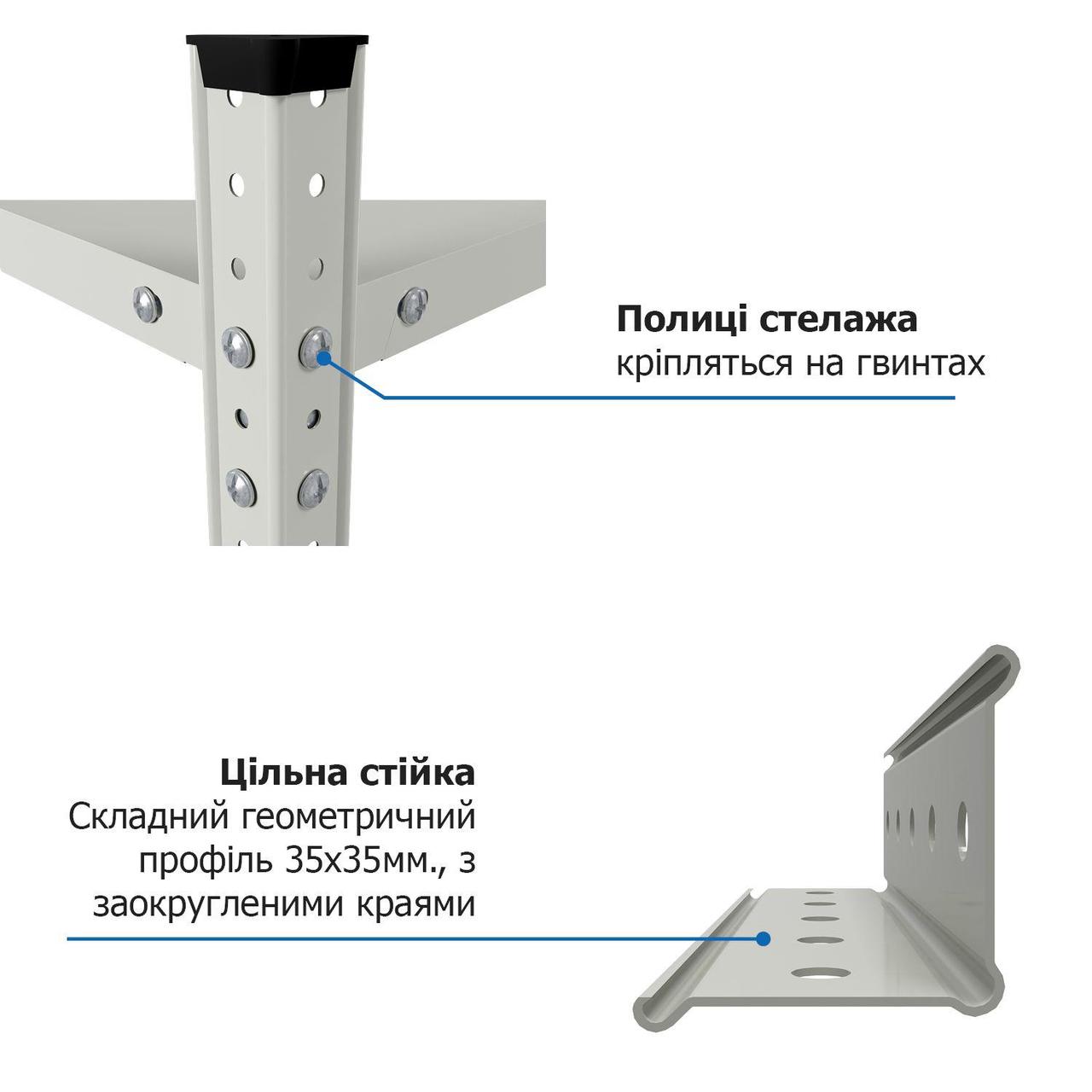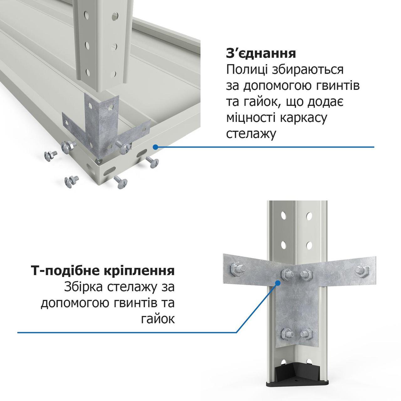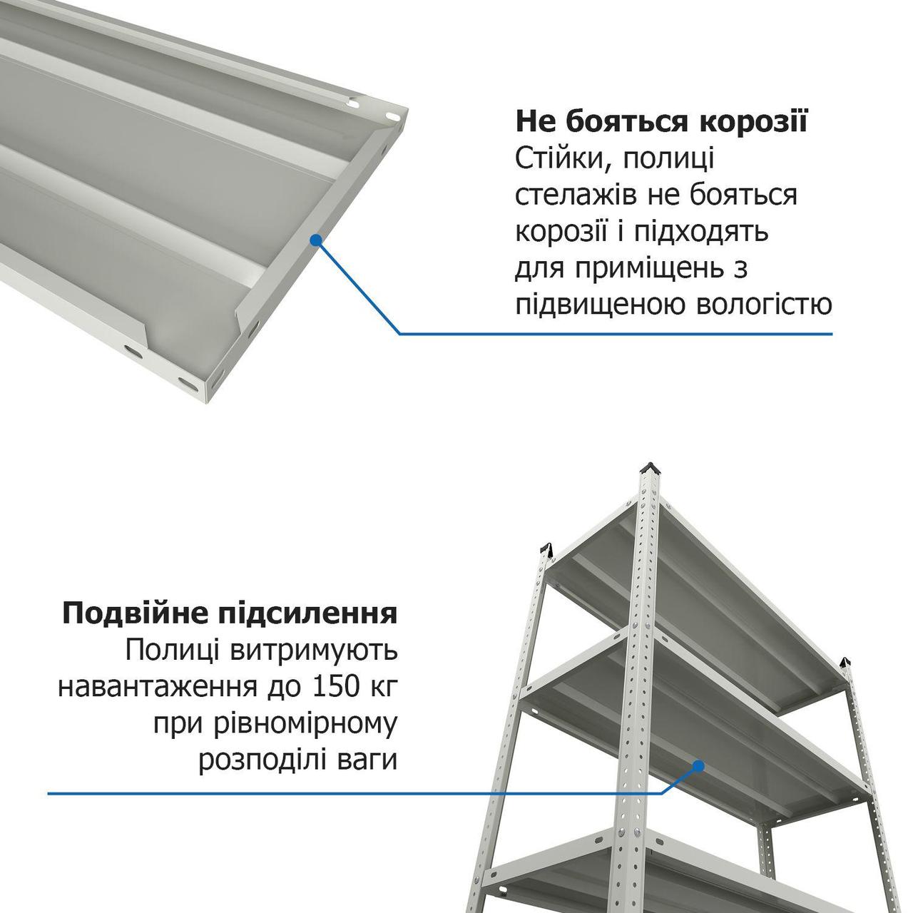 Стійки, траверси та полиці стелажів не бояться корозії та підходять для приміщень із підвищеною вологістю.