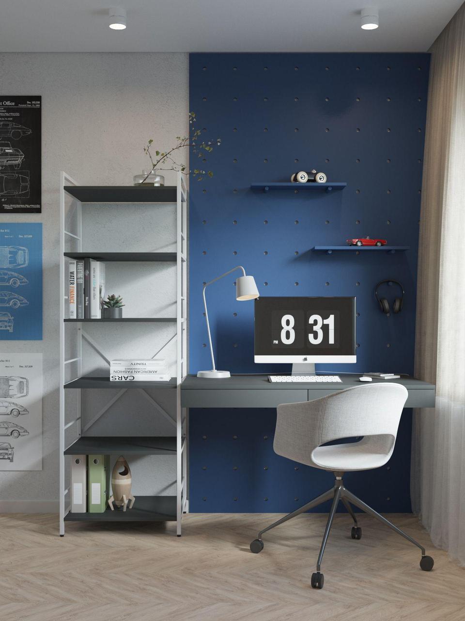 Модель доступна у двох варіантах каркаса: Білий або Антрацит. Полиці можна вибрати у відтінках, які часто застосовуються як базові в лофт-дизайні.