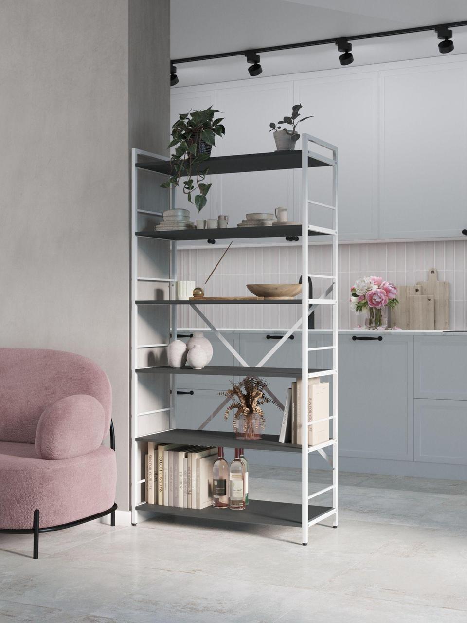Стелаж Лофт 1800х600х240 Місяць, 75 кг/полицю, 6 полиць, ЛДСП, білий-антрацит