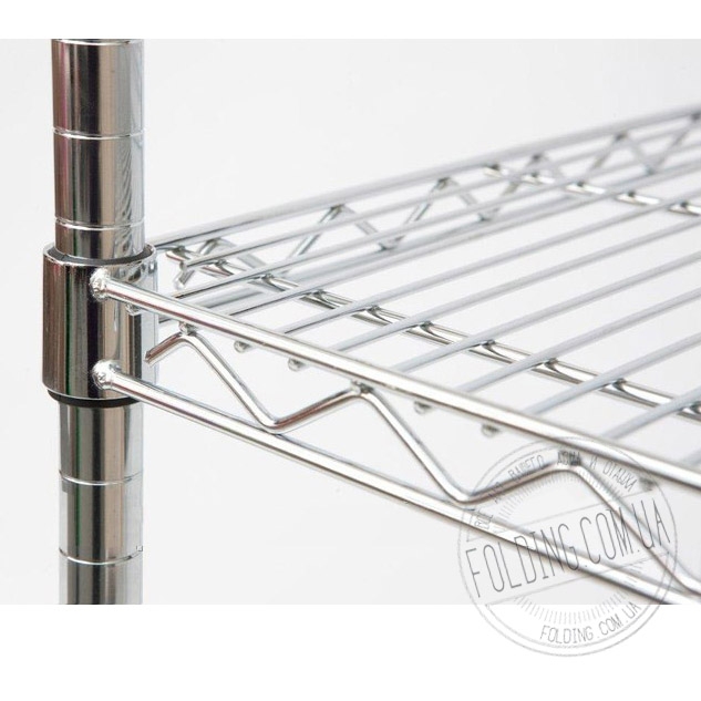 Стеллаж SR-0685-5 хромированный на 5 полок, длина 91 см, способен выдерживать максимальную нагрузку в 600 кг. При этом каждая полка рассчитана на вес до 150 кг, (при условии равномерного распределения веса).