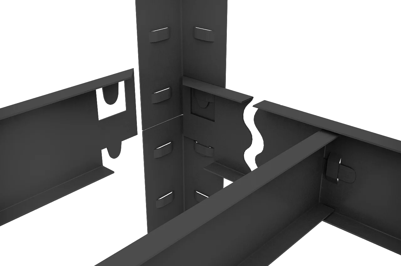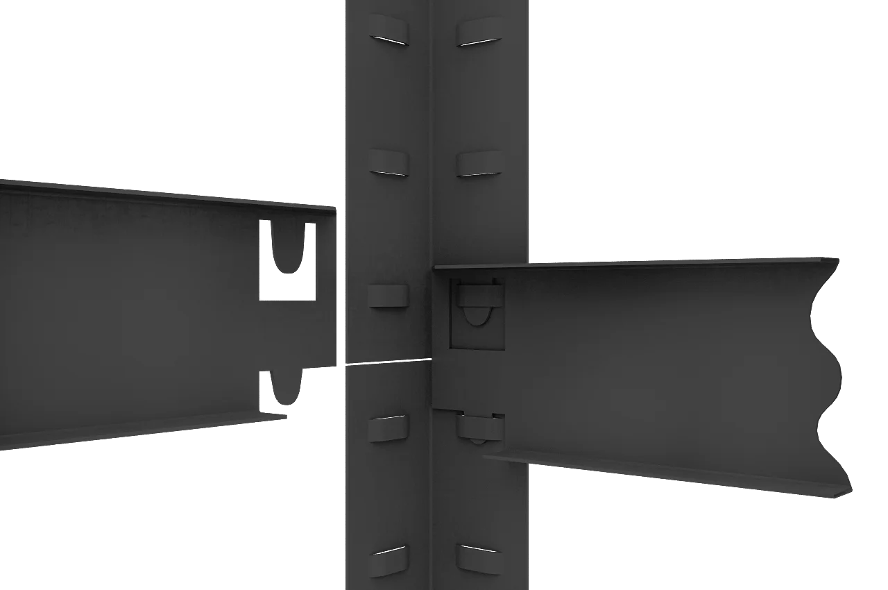 Полиці стелажу кріпляться на зачіпках, що полегшує та прискорює процес складання (15-30 хв).