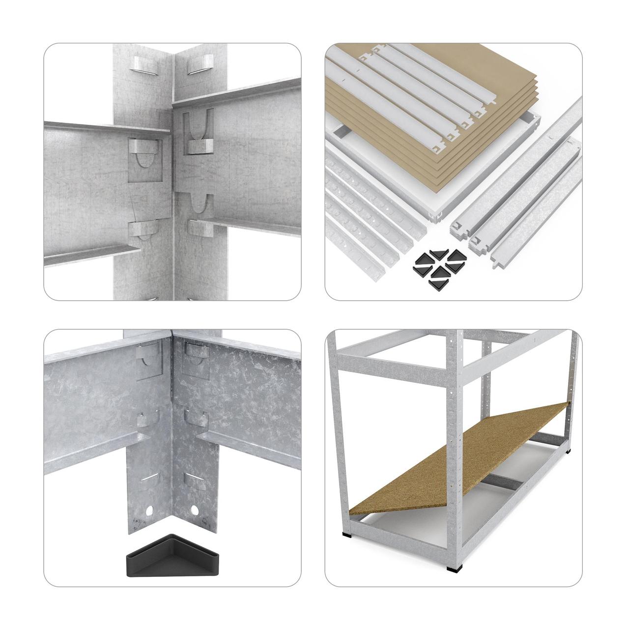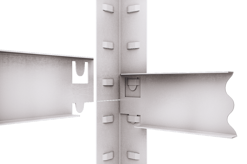 Полиці стелажу кріпляться на зачіпках, що полегшує та прискорює процес складання (15-30 хв).