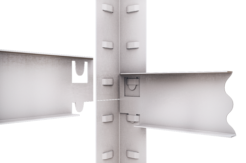 Полиці стелажу кріпляться на зачіпках, що полегшує та прискорює процес складання (15-30 хв).