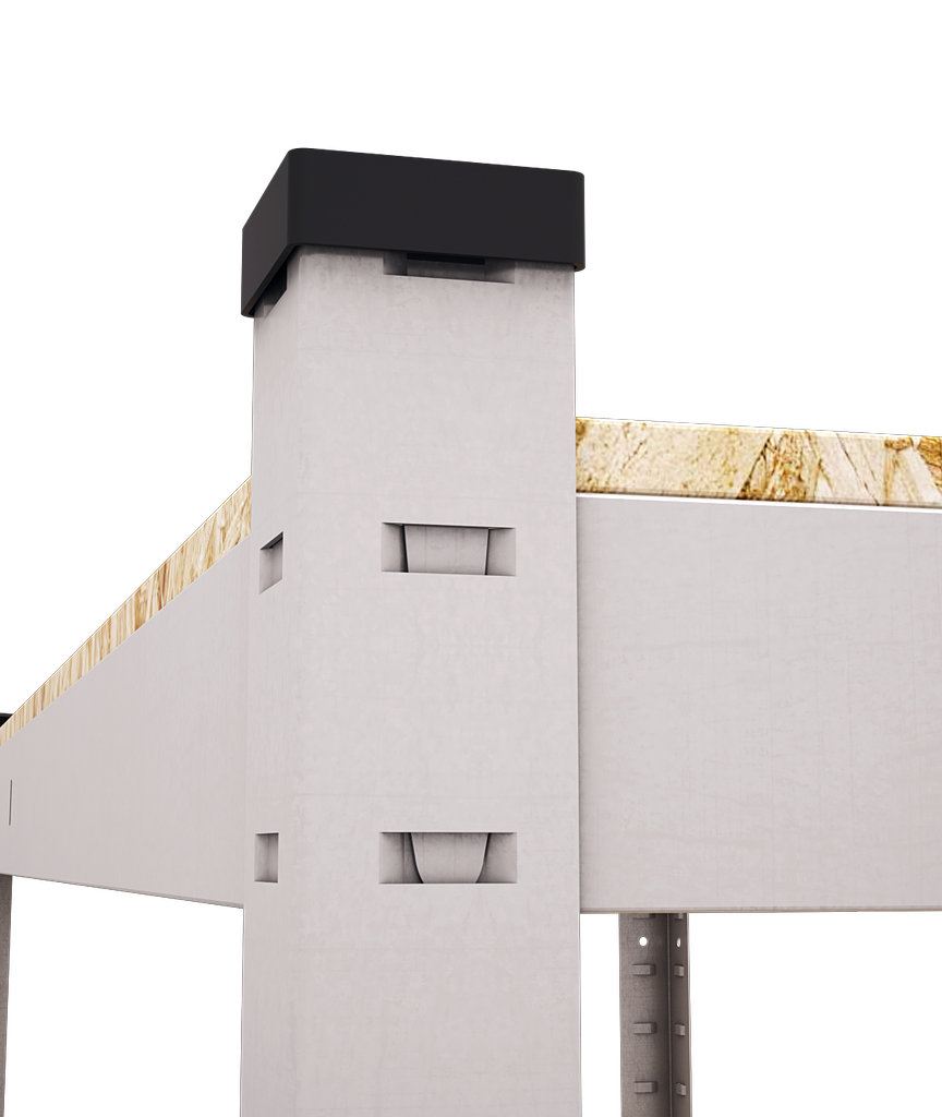 Під час складання стелажу з підсилювачем полиці, його зачепи необхідно ЗАХОДИ ВНУТРІВАННЯ. Це сильно впливає на максимальне навантаження, яке витримує поличка.