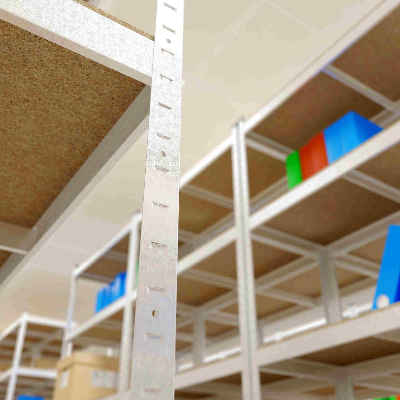 Стійки та траверси стелажів не бояться корозії та підходять для приміщень із підвищеною вологістю.