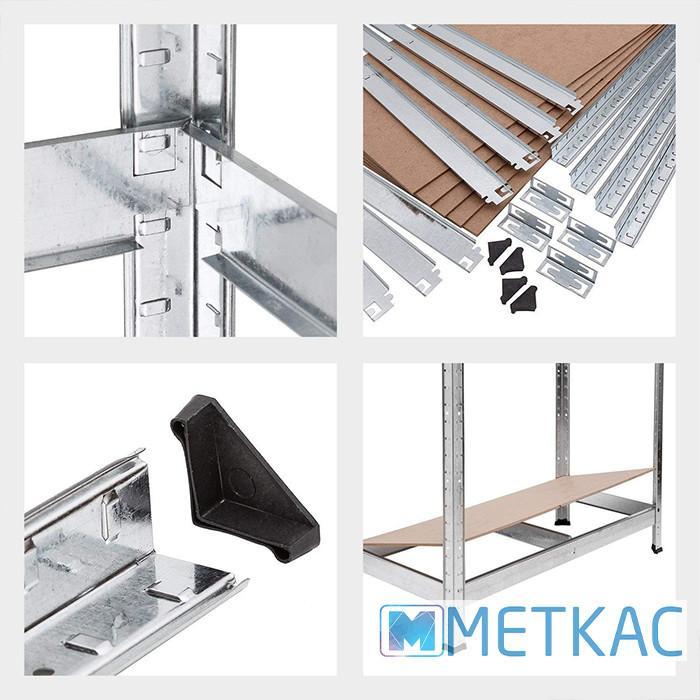Полиці стелажу кріпляться на зачіпках, що полегшує та прискорює процес складання (15-30 хв).