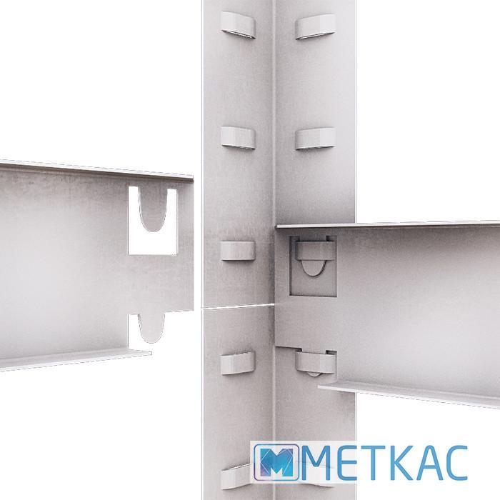 Полиці стелажу кріпляться на зачіпках, що полегшує та прискорює процес складання (15-30 хв).