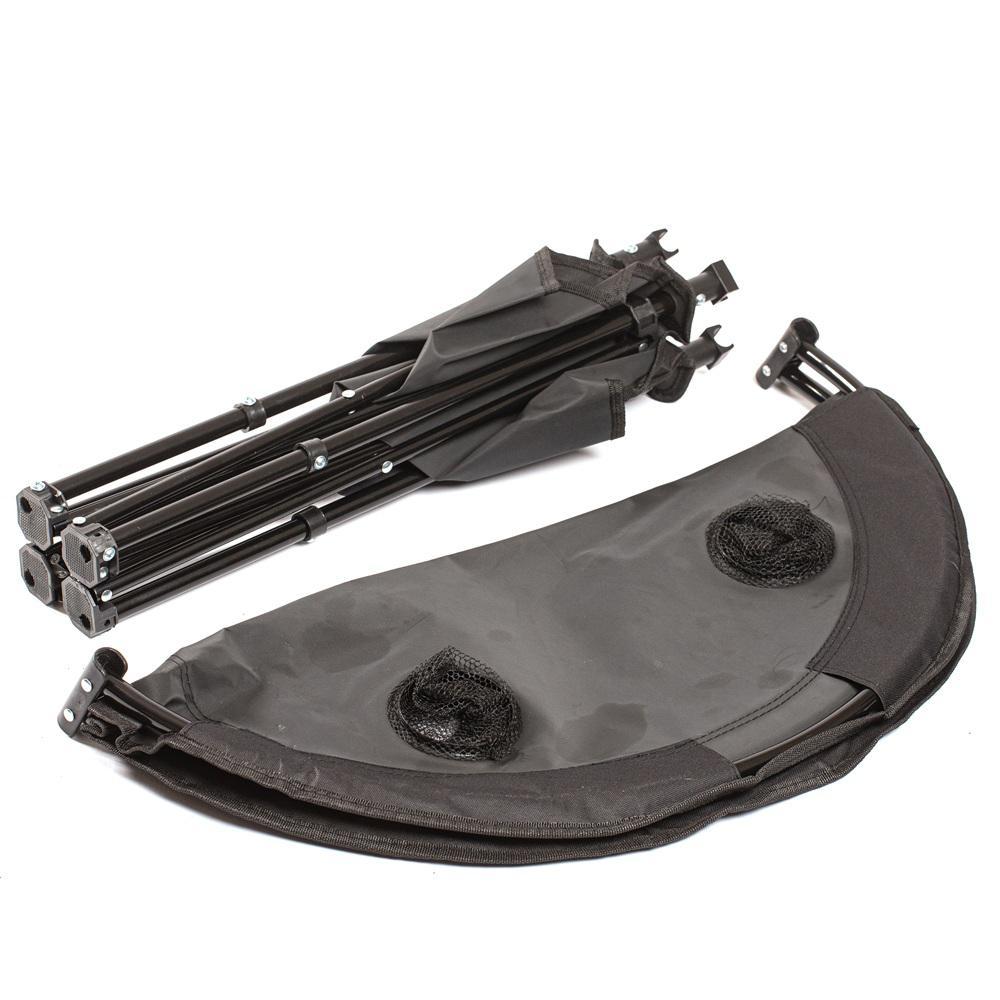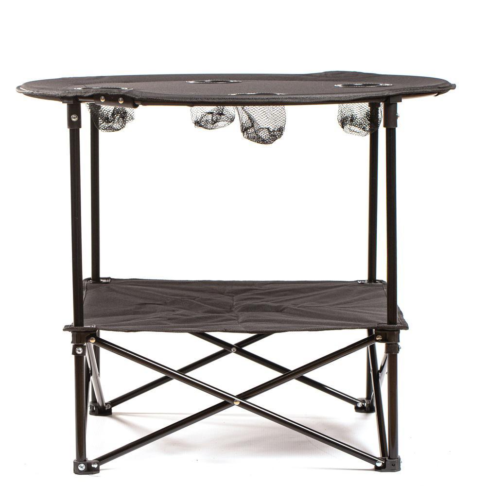 робить тканину водонепроникненною. Не піддається впливу УФ-променям, не вигоряє, буде довгий час мати приємний зовнішній вигляд. Має круглу форму, що дуже зручно при розташувані 4-х осіб, ніхто нікому не буде заважати і зручно знаходитись довколо. В столі розташовані 4 підсклянника для напоїв. Каркас столу виконаний з легкого авіаційного алюмінію, міцна конструкція робить складаний стіл довговічним. Не потребую додаткового догляду, достатньо просто протирати ганчіркою і стіл буде як новий. Аби розкласти чи скласти не потрібно багато часу чи зайвих зусиль, все продумано та полегшено, зібрати зможе будь хто. Необхідно просто витягти з чохла, розкрити конструкцію та зафіксувати профіль стільницю. Процес складання займе лічені секунди. Знизу додатково передбачена полиця, для необхідних речей все буде під рукою але не заважатиме. Максимальне навантаження на стіл