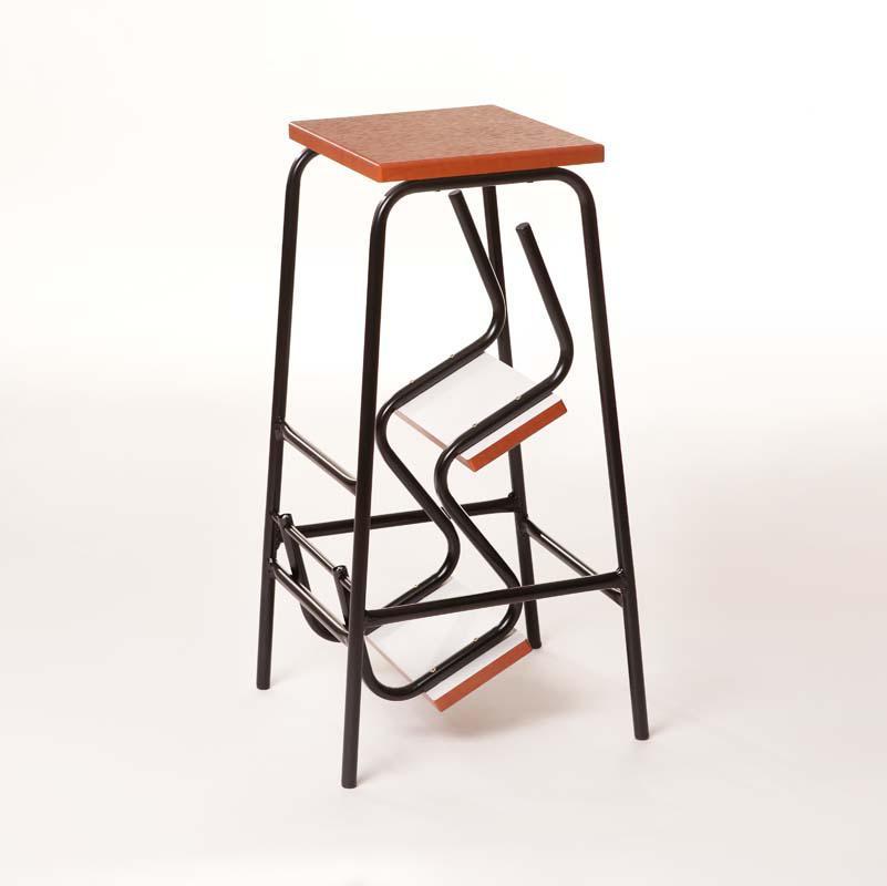 Стілець Драбина від ТМ Вітан - незамінна річ у господарстві. Конструкція виготовлена із сталевої труби діаметром 16мм, із полімерним покриттям. Сидіння та сходи виготовлені з ламінованої плити МДФ. Стілець "Стрем'янка" незамінний у домашньому господарстві - піднятися високо, чи то заміна лампи або необхідність повісити на стіні картини. Конструкція трансформується в невелику драбинку, що дає можливість з легкістю піднятися нагору.