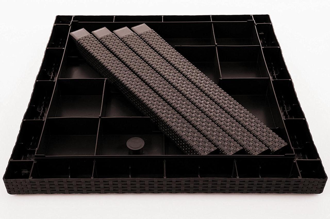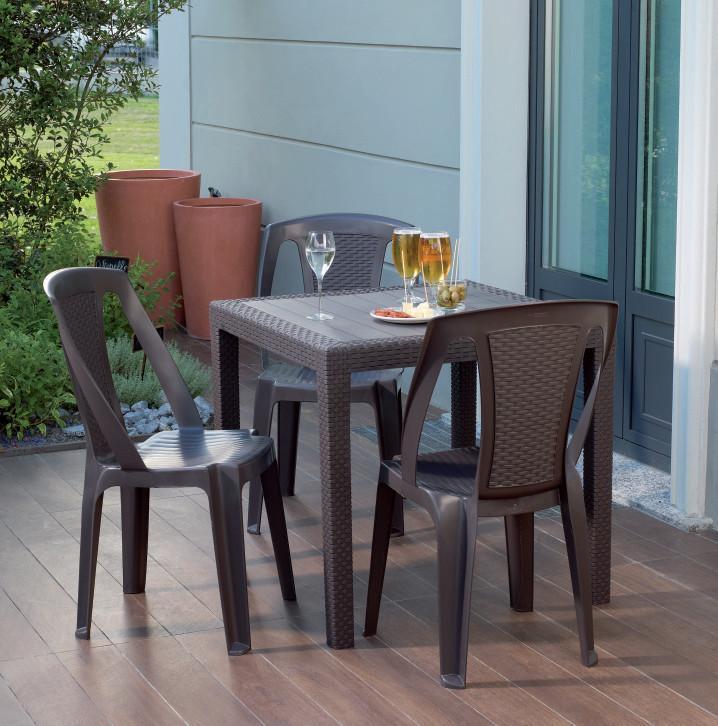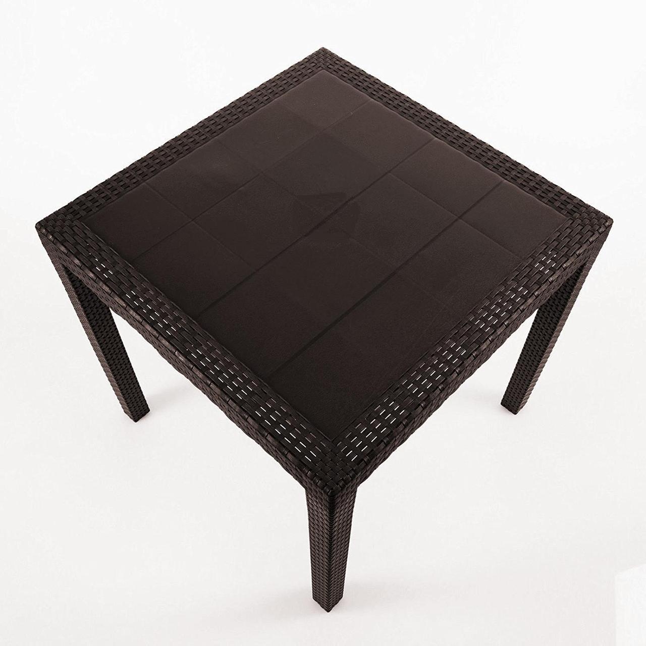 Цей матеріал має високу стійкість до різноманітних природних факторів, таких як висока вологість, перепади температур, УФ-випромінювання сонячного світла, тому стіл можна зберігати на відкритих майданчиках.