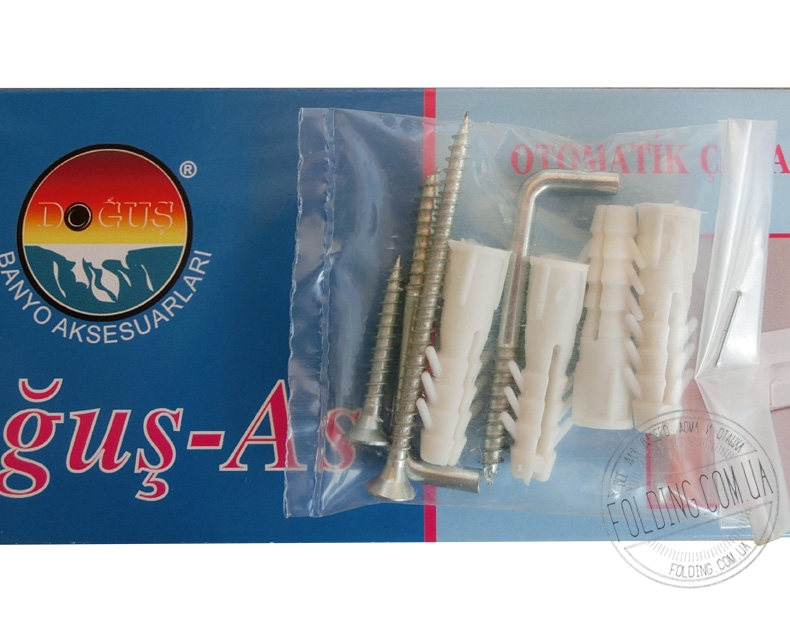Металлические крючки для крепления к стене + пластмассовые дюбели входят в комплект сушилки «Dogus».