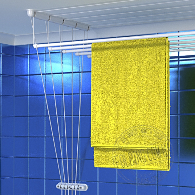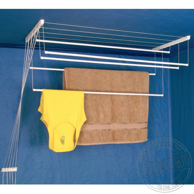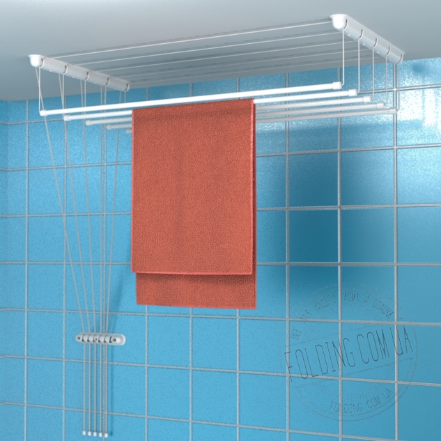 Кронштейни монтуються до стелі за допомогою шурупів. Пересувні трубки для білизни кріпляться на шнурах.