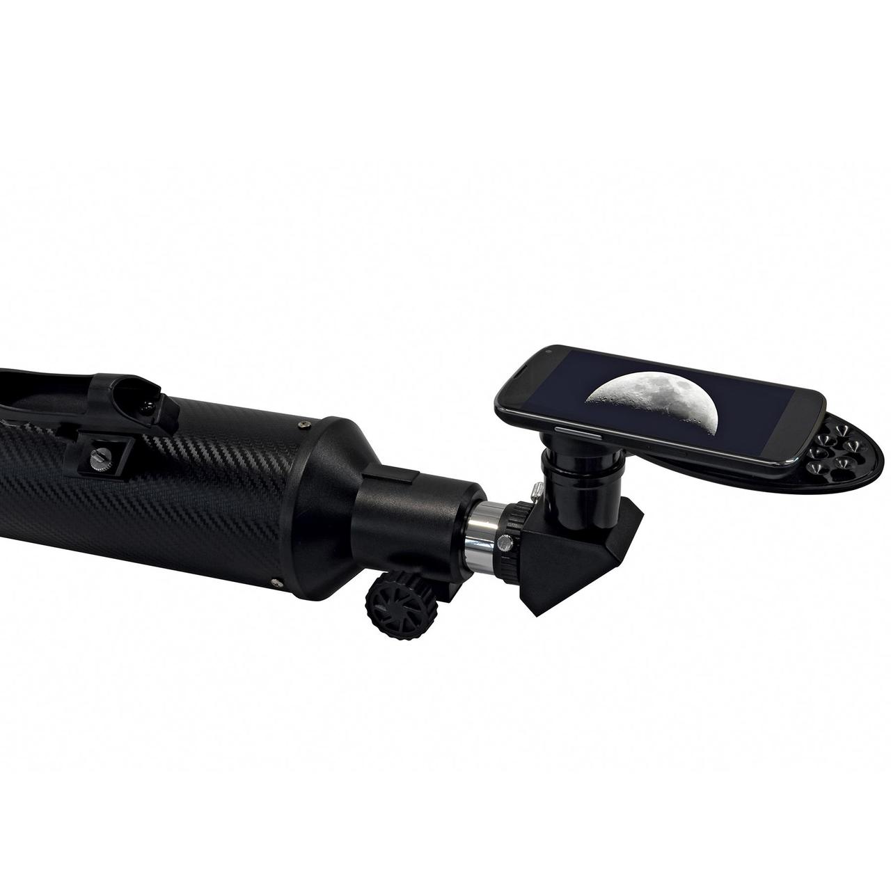 Дана модель цікава тим, що за прийнятною ціною тепер доступні планетарні спостереження та спостереження сонячної активності за допомогою одного телескопа. Дана модель телескопа має збільшену фокусну відстань, що дозволяє отримати пристойне збільшення навіть з 20-мм окуляром. Це чудовий вибір для підлітків та тих, хто робить свої перші кроки в астрономії. Телескоп з ручним керуванням має якісну просвітлену антивідблиску оптику, що дозволяє спостерігати кратери на Місяці діаметром 5-8 км, зірки слабкого світіння (до 11,5 зіркових величин), Юпітер з його супутниками, кільця Сатурна, зміни в атмосфері Венери, Уран та Нептун у вигляді зірок, полярні шапки Марса та деякі інші об'єкти. При використанні апертурного фільтра можна визначати структуру сонячних плям. У комплектації поставляється спеціальний сонячний фільтр, що захищає очі від проникнення ультрафіолетового, інфрачервоного та видимого надяскравого сонячного випромінювання, пропускаючи лише кількість видимих світлових хвиль, якого достатньо для формування якісного зображення Сонця. Фільтр тестований незалежною організацією забезпечення якості продукції та має європейський сертифікат відповідності CE. Видошукач Red Dot помітно полегшує наведення приладу на об'єкт, що цікавить, діагональне дзеркало робить спостереження максимально комфортним і зрозумілим, а азимутальне монтування дозволяє легко адаптуватися до телескопа навіть недосвідченому астроному. Телескоп оснащений посиленою та стійкішою алюмінієвою триножкою з шестигранним перетином. Завдяки обробці у вигляді карбонового волокна на поверхні оптичної труби не залишаються відбитки пальців, телескоп виглядає дуже стильно та сучасно. У комплектацію входить адаптер для смартфона (планшета). Адаптер кріпиться на вибраному окулярі і дозволяє проводити фото та відеозйомку головною або передньою камерою гаджета. Гладка тильна сторона смартфона надійно кріпиться за допомогою безлічі присосок адаптера (у разі рифленої тильної поверхні смартфона рекомендується використовувати передню камеру). Прилад максимально простий у конструкції, що дозволяє зібрати чи розібрати його за лічені хвилини. Таким чином, не складе проблем взяти телескоп із собою на природу. Телескоп можна використовувати як потужну підзорну трубу, милуючись міськими пам'ятками з дахів будинків, спостерігаючи за тваринами чи птахами у лісі або навіть за кораблями на морському узбережжі. А яскраві, контрастні зображення тисяч об'єктів нічного неба нікого не залишать байдужими до астрономії. Телескоп Bresser Sirius 70/900 AZ з сонячним фільтром і адаптером для смартфона (4512001) дозволить побачити більше, ніж бачив Галілео Галілей у свої найкращі телескопи.