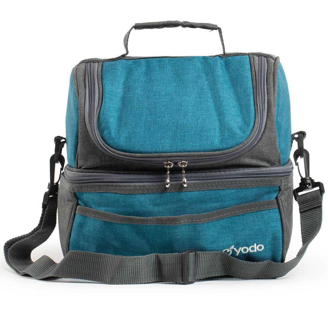 Сумка-ланчбокс YODO Lunch 12L Blue із 2 відсіками. Зручна та містка термосумка ідеально підходить для зберігання продуктів, що швидко псуються, або охолоджених напоїв. Завдяки двом окремим відділенням, ви зможете розділити їжу так, як зручно саме вам. Ідеальний варіант, щоб брати з собою обід чи перекус у дорогу. У сумку легко вмістяться продукти та напої, а завдяки продуманій конструкції користуватися нею надзвичайно зручно. Особливо це оцінять працівники, які виходять на