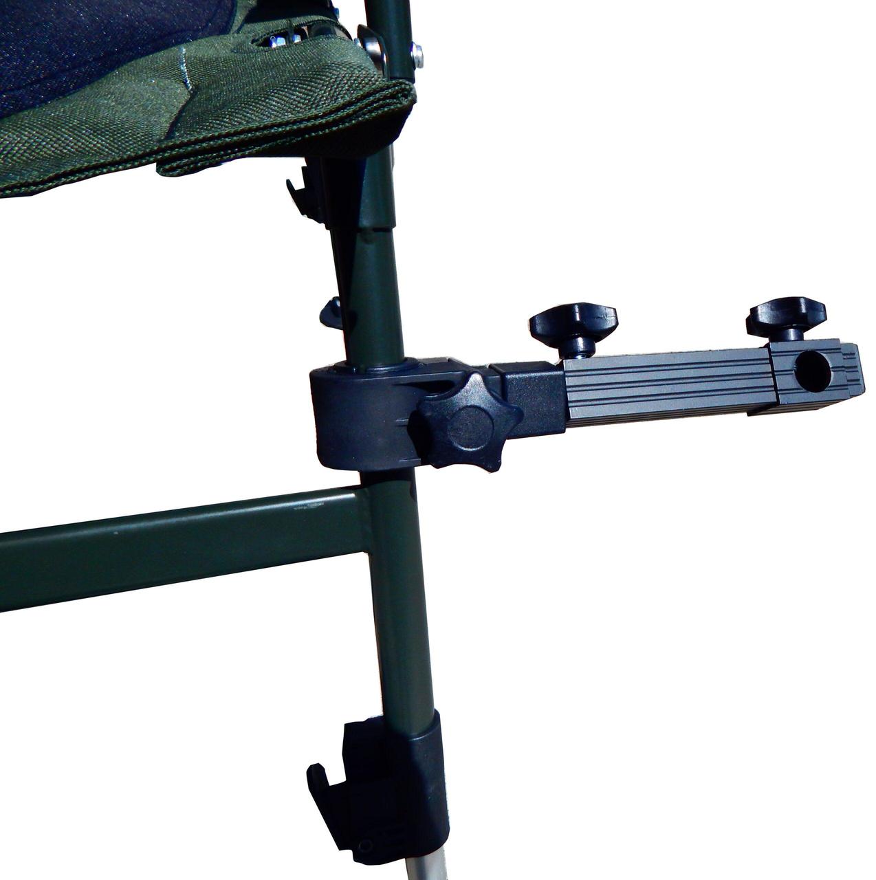 Тримач для рибальської парасольки на крісло — це незамінний аксесуар для комфортної риболовлі у спекотні сонячні дні або під час дощу. Коли немає можливості встановити парасольку в землю — наприклад, якщо ви рибалите на вимостці чи твердій поверхні — цей тримач стане ідеальним рішенням. Він надійно фіксується безпосередньо до рибальського крісла, забезпечуючи стабільність та максимальну зручність. Тримач підходить для крісел з діаметром труб 22–35 мм, сумісний з круглими та квадратними профілями, що робить його універсальним для більшості моделей. Завдяки поворотному механізму ви можете легко відрегулювати кут нахилу парасольки, завжди залишаючись у тіні або захисті від опадів. Всі кріплення виконані з високоякісних матеріалів, тому парасолька залишатиметься надійно зафіксованою навіть під поривами вітру. Переваги: