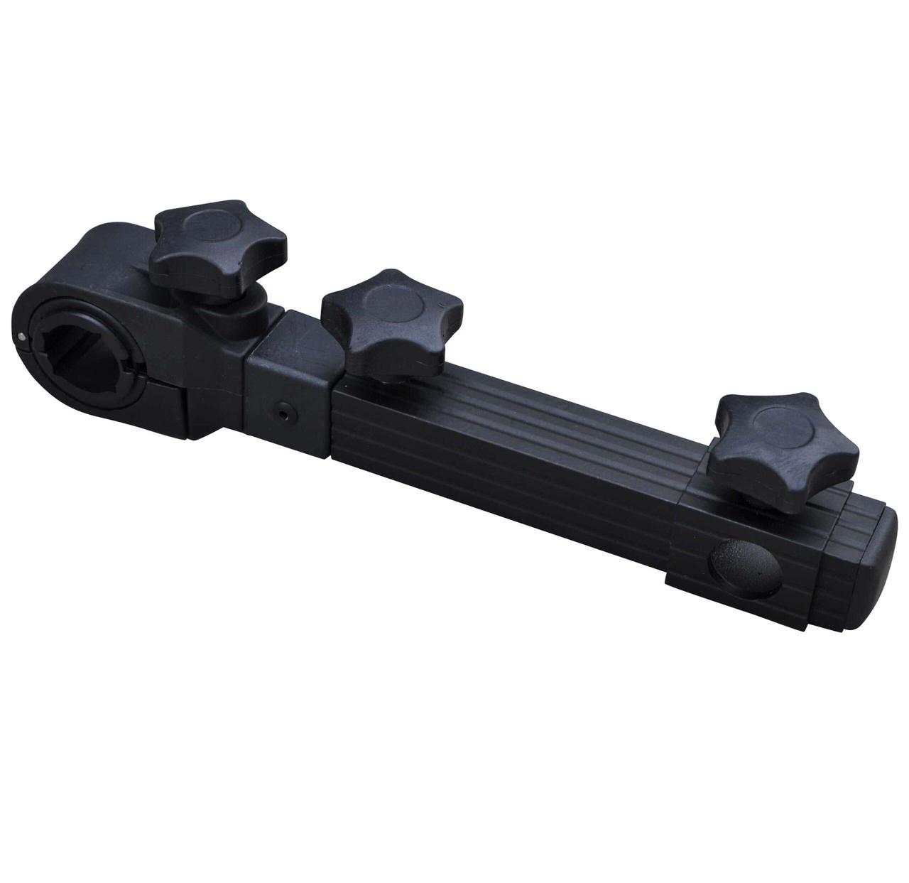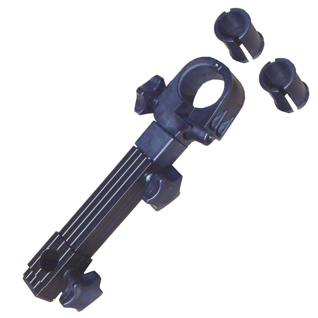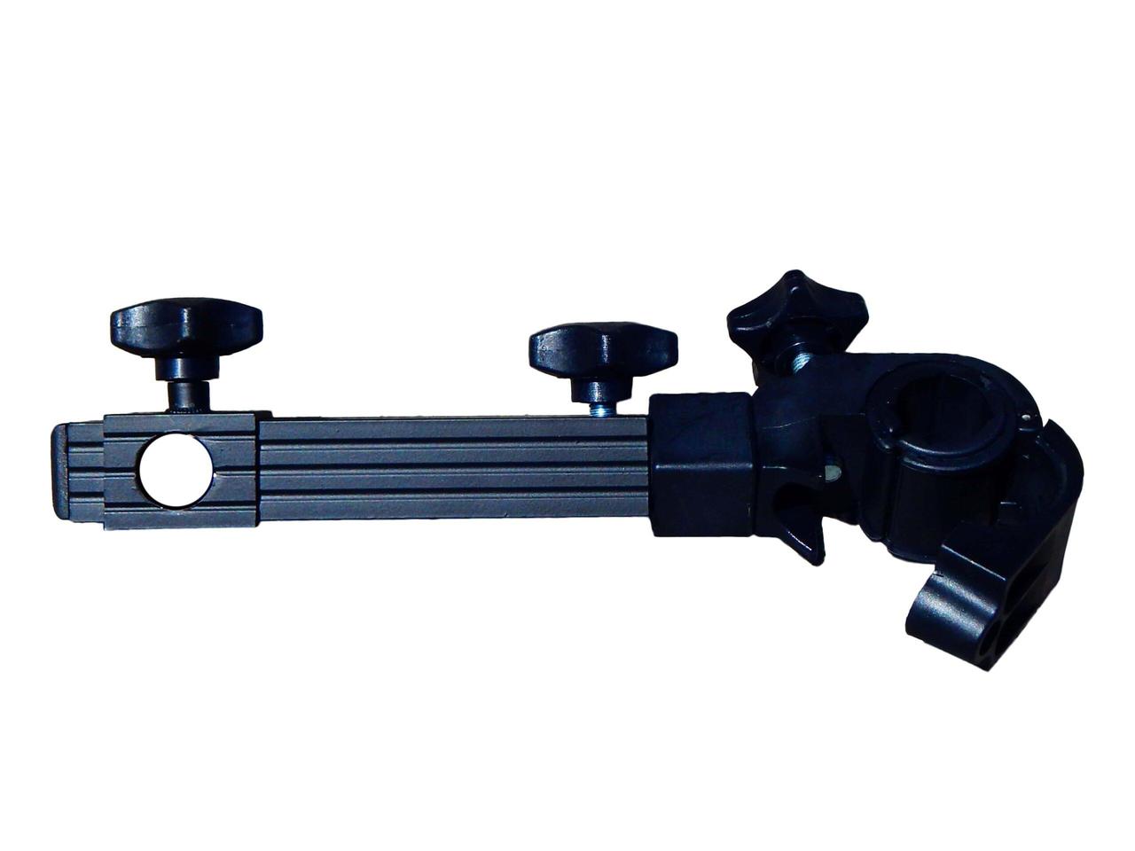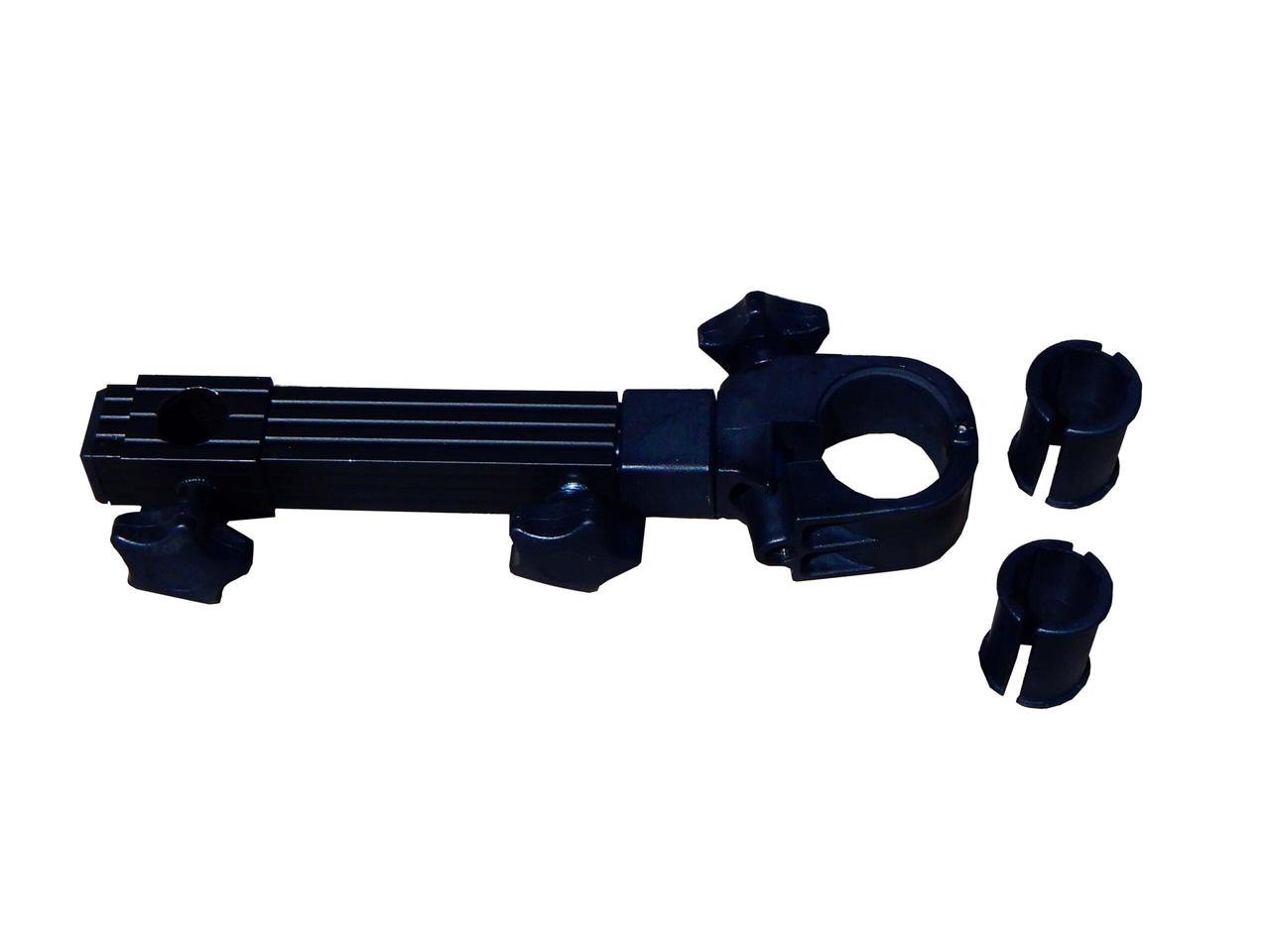 Характеристики: - матеріал: алюміній, пластик; - колір: чорний; - розміри: довжина - 25 см; - сумісність: труба Ø 22–35 мм (кругла та квадратна) - поворот: 360 градусів.