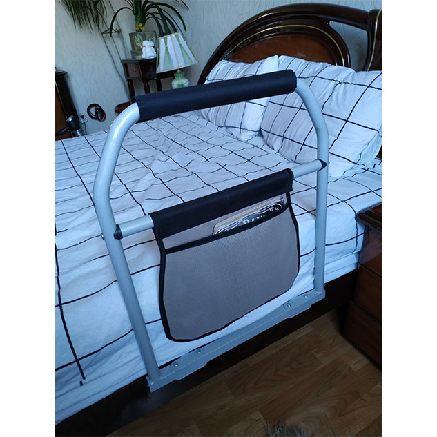 Упор для підйому з ліжка АР-5092 призначений для допомоги вагітним, літнім людям, при реабілітації після різних травм і в післяопераційний період. При установці вироби на ліжко(під матрац) Ви не відчуєте дискомфорту під час сну. Знімний органайзер і знімна м'яка проставка знаходяться зверху. Розбірна конструкція зручна при транспортуванні і установці.